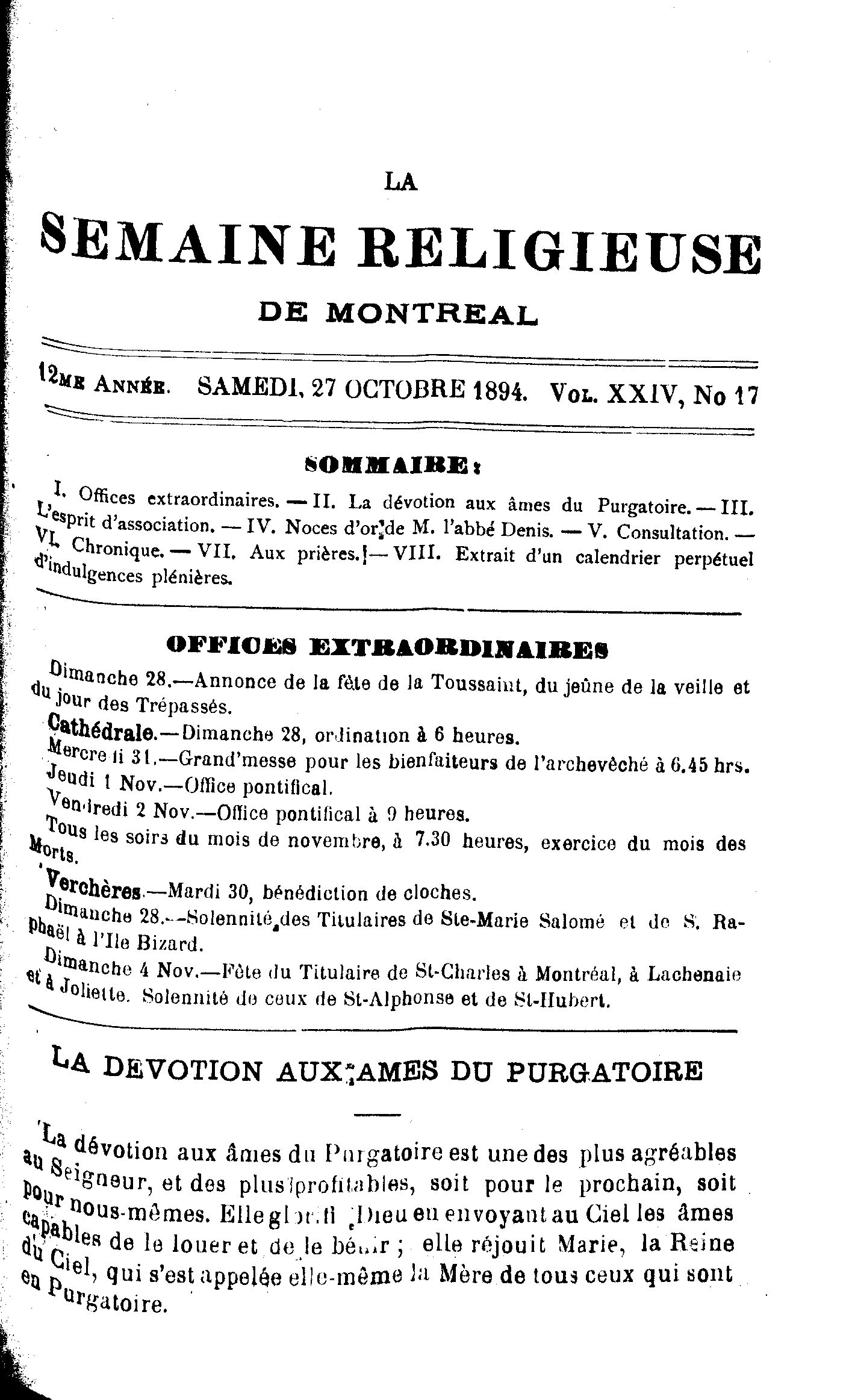 La semaine religieuse de Montréal : Vol. 24, no 17 (27 oct. 1894)