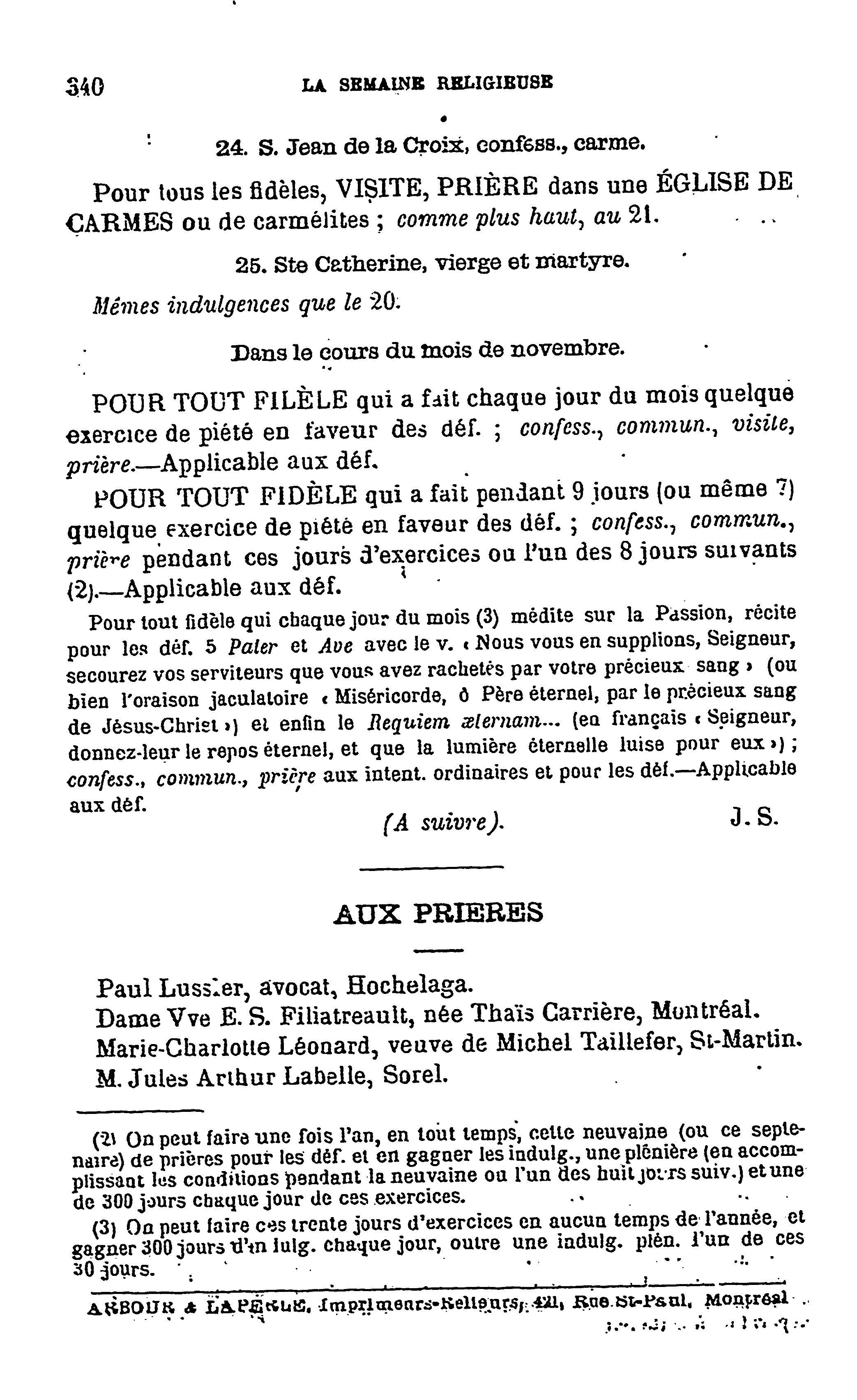 La semaine religieuse de Montréal : Vol. 24, no 20 (17 nov. 1894)
