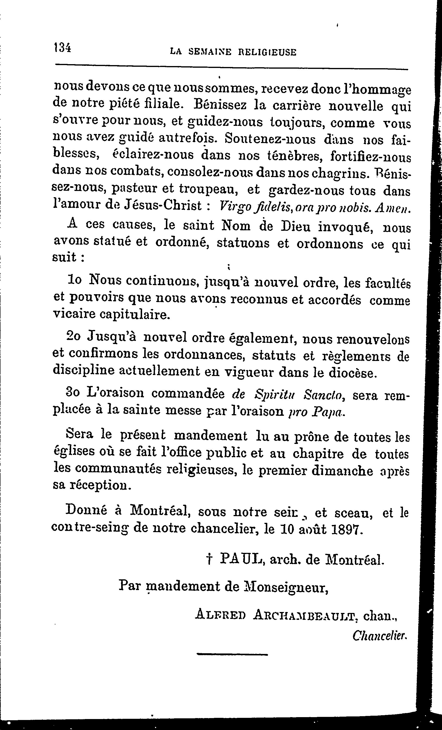 La semaine religieuse de Montréal : Vol. 30, no 8 (21 août 1897)