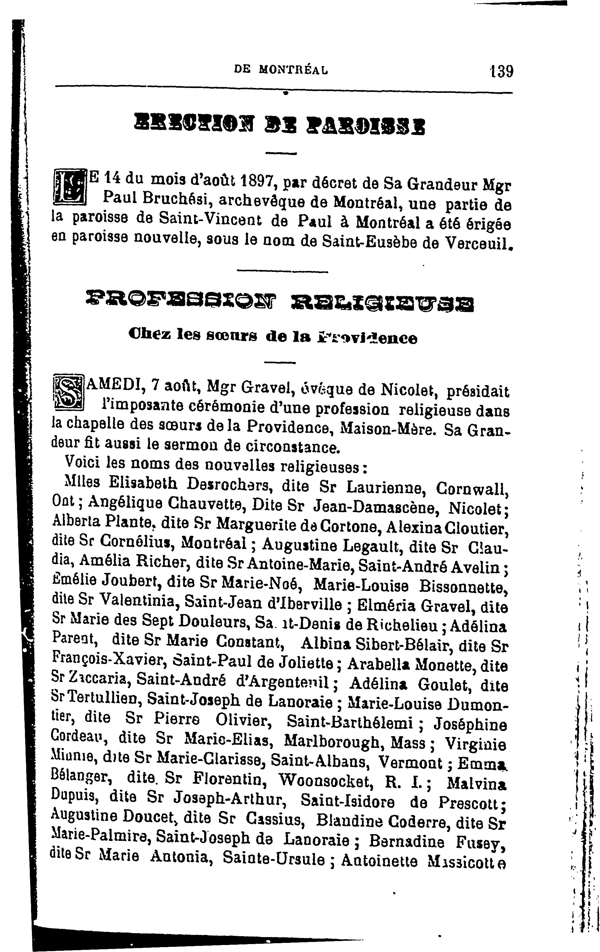 - [Montréal : Publiée avec l'approbation de Sa Grandeur Mgr l'Évèque de Montréal, 1897]