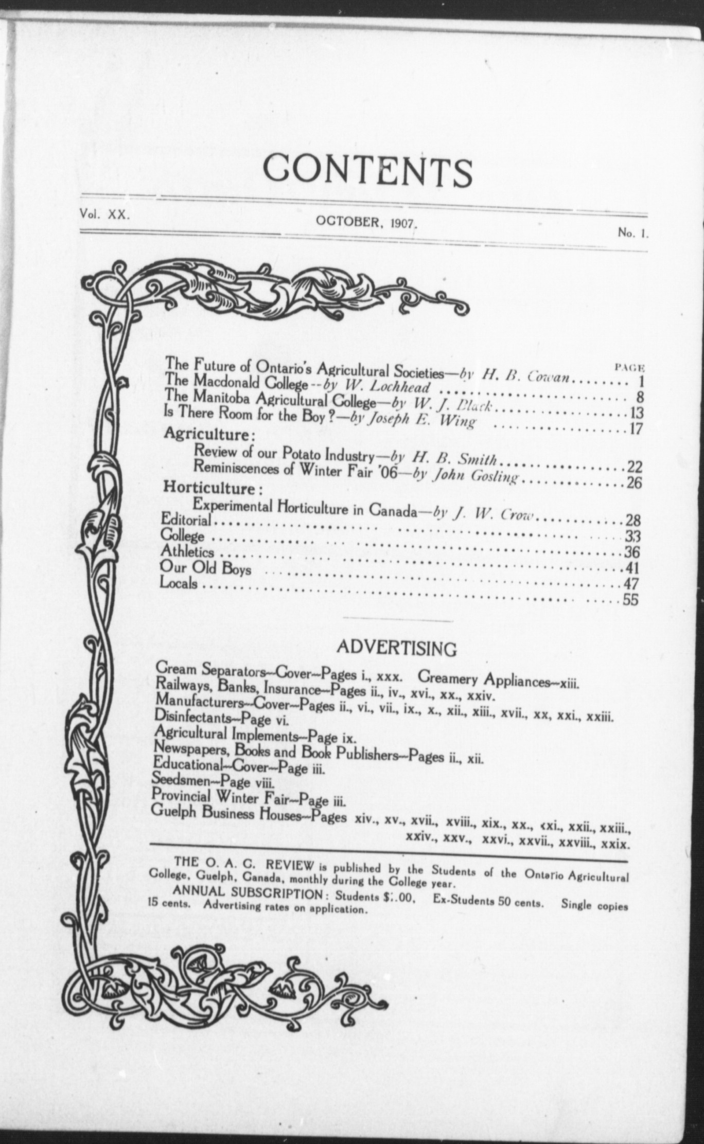 The O.A.C. review : Vol. 20, no. 1 (Oct. 1907)