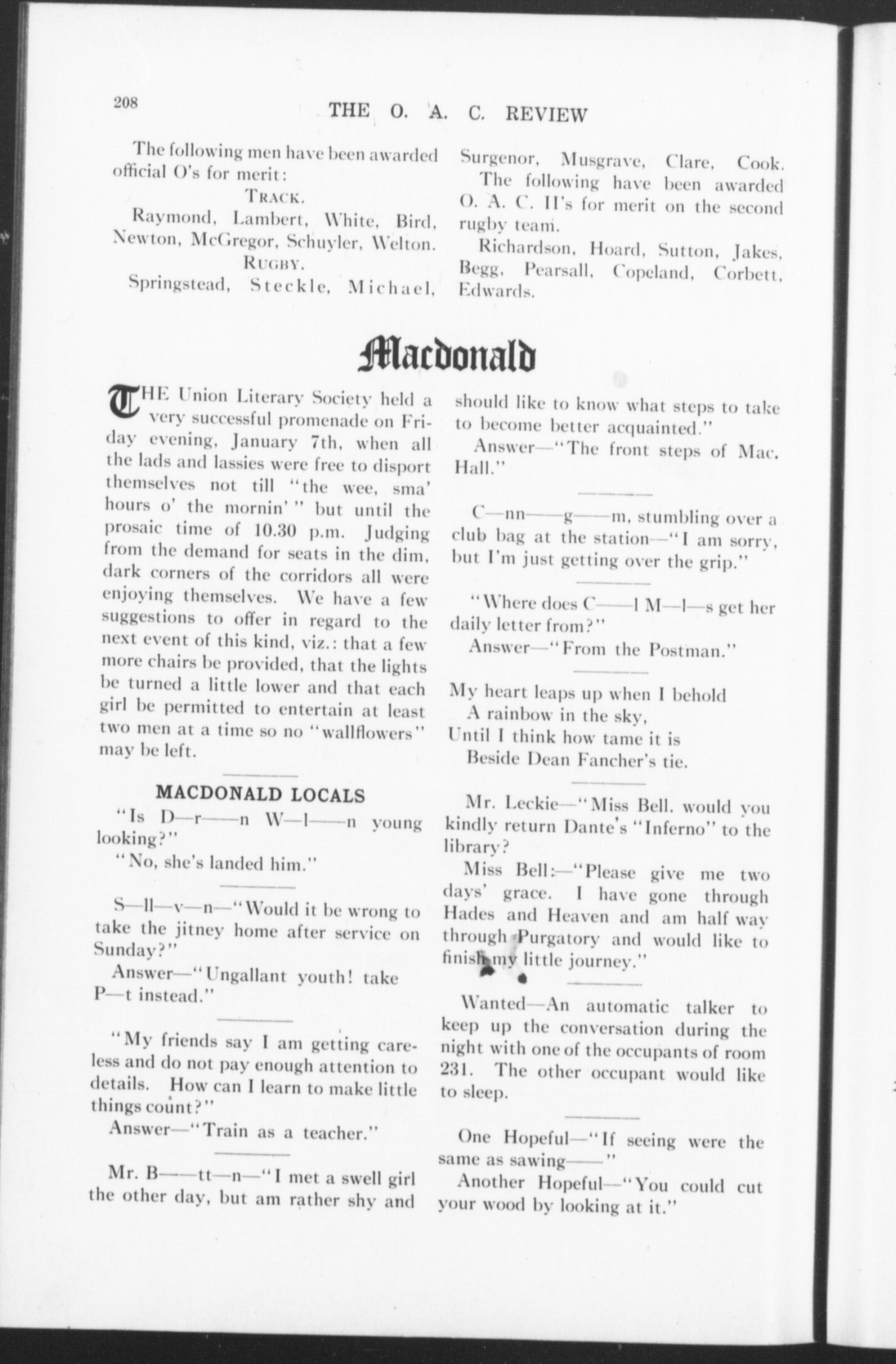 The O.A.C. review : Vol. 27 [i.e. 28], no. 5 (Jan. 1916)