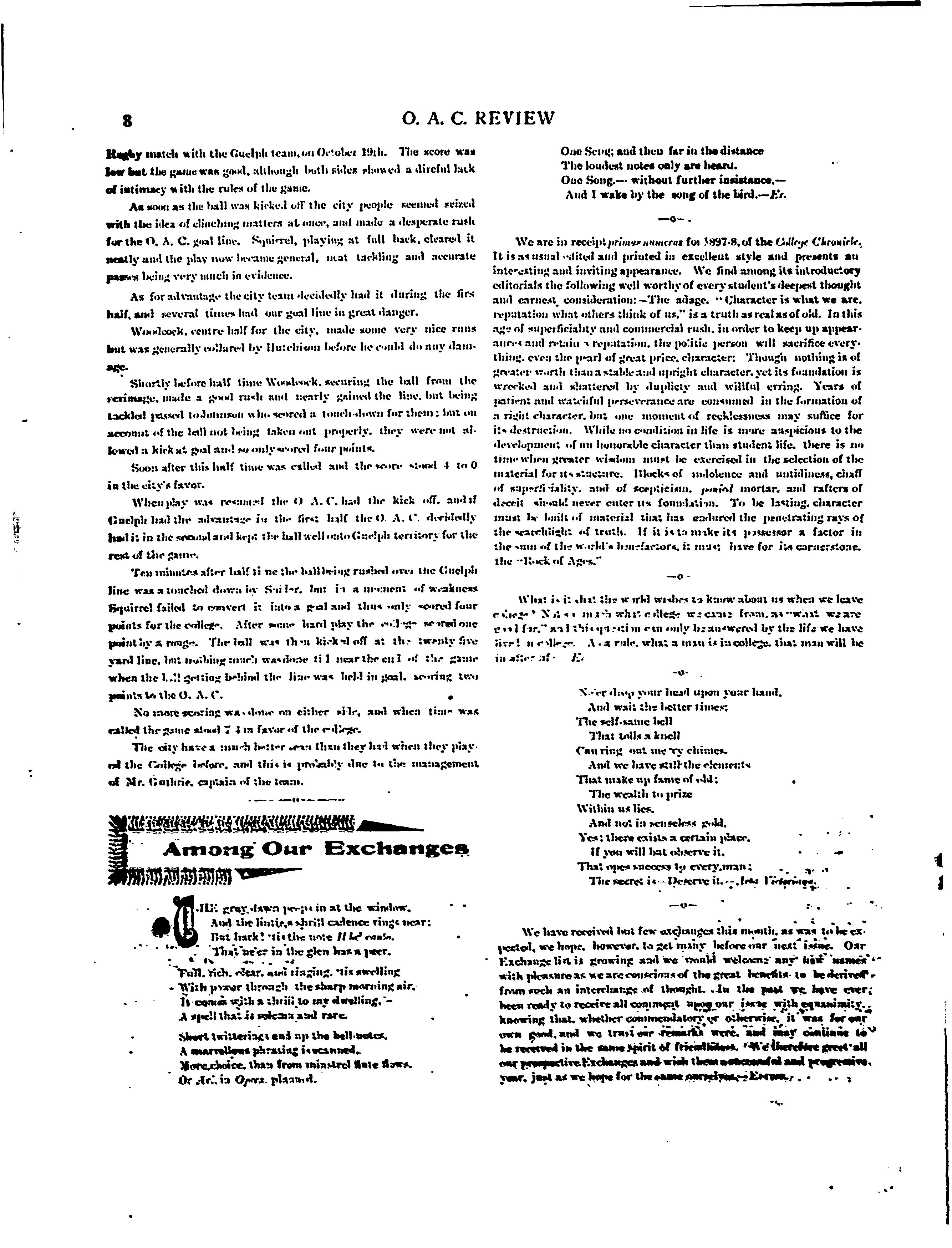 Guelph, Ont. : Literary Society of the Ontario Agricultural College, [1897]; 14 images avec recherche en texte intégral