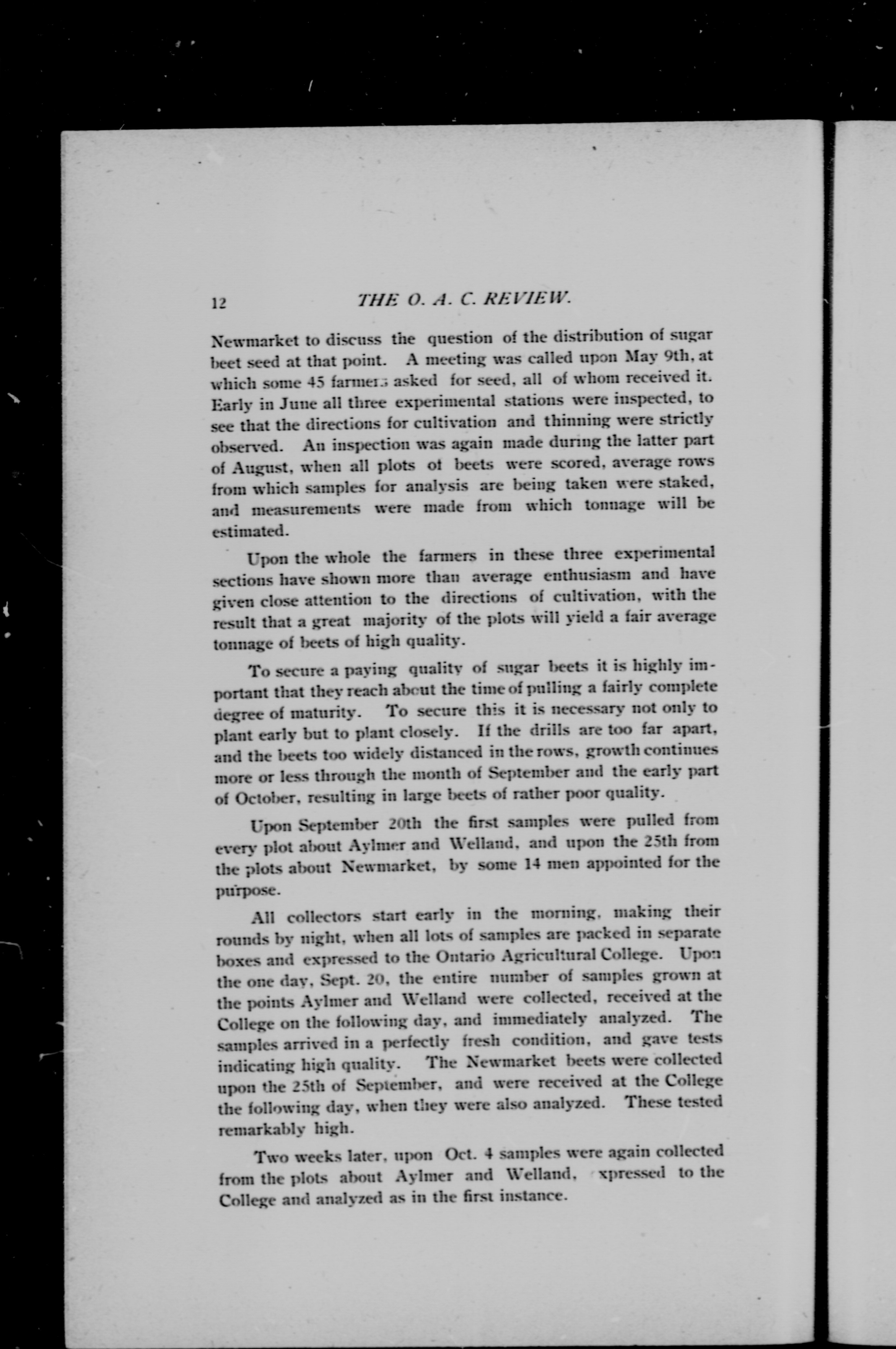 The O.A.C. review : Vol. 12, no. 1 (Oct. 1900)