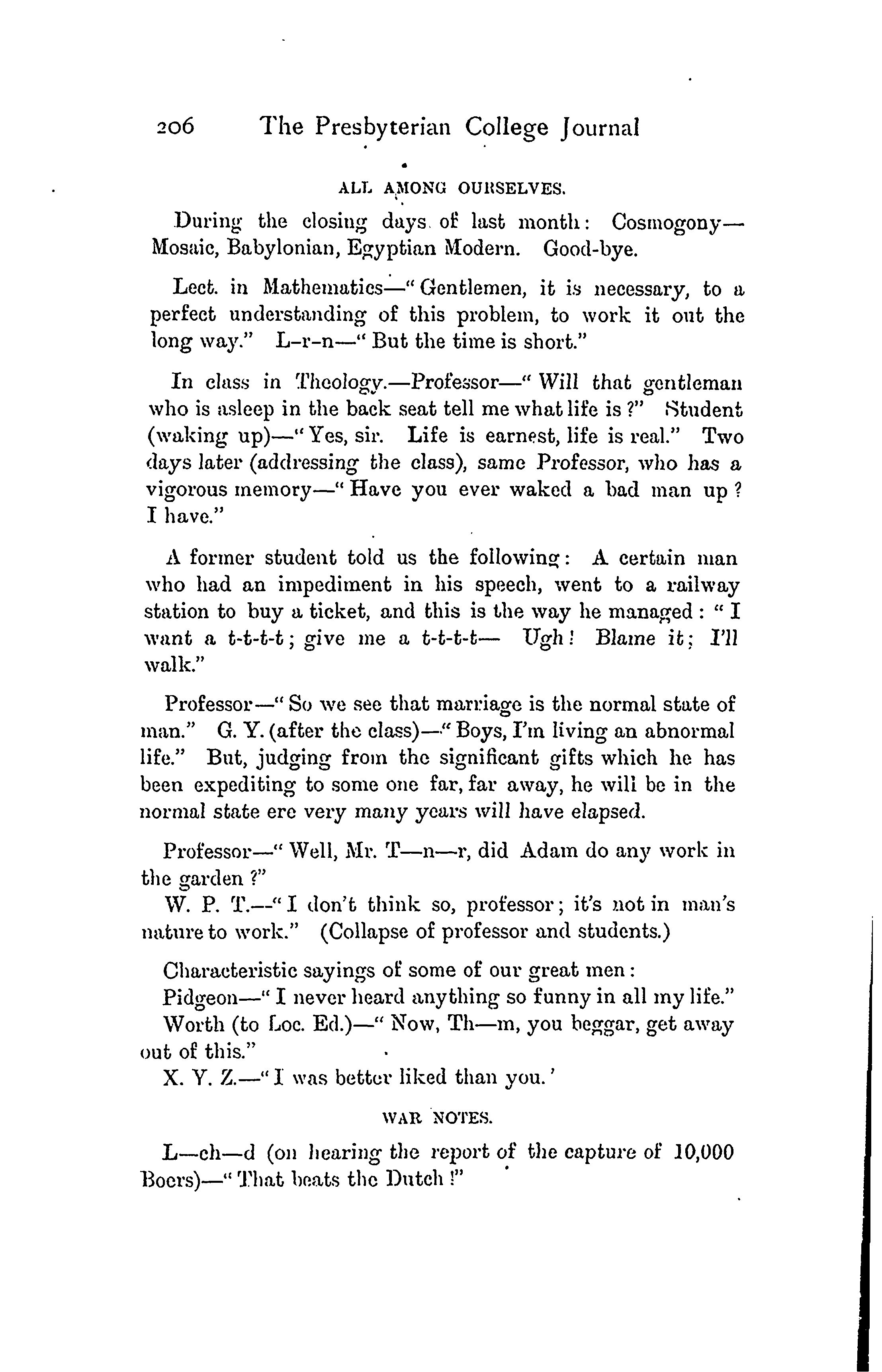 Presbyterian College journal : Vol. 19, no. 3 (Jan. 1900)