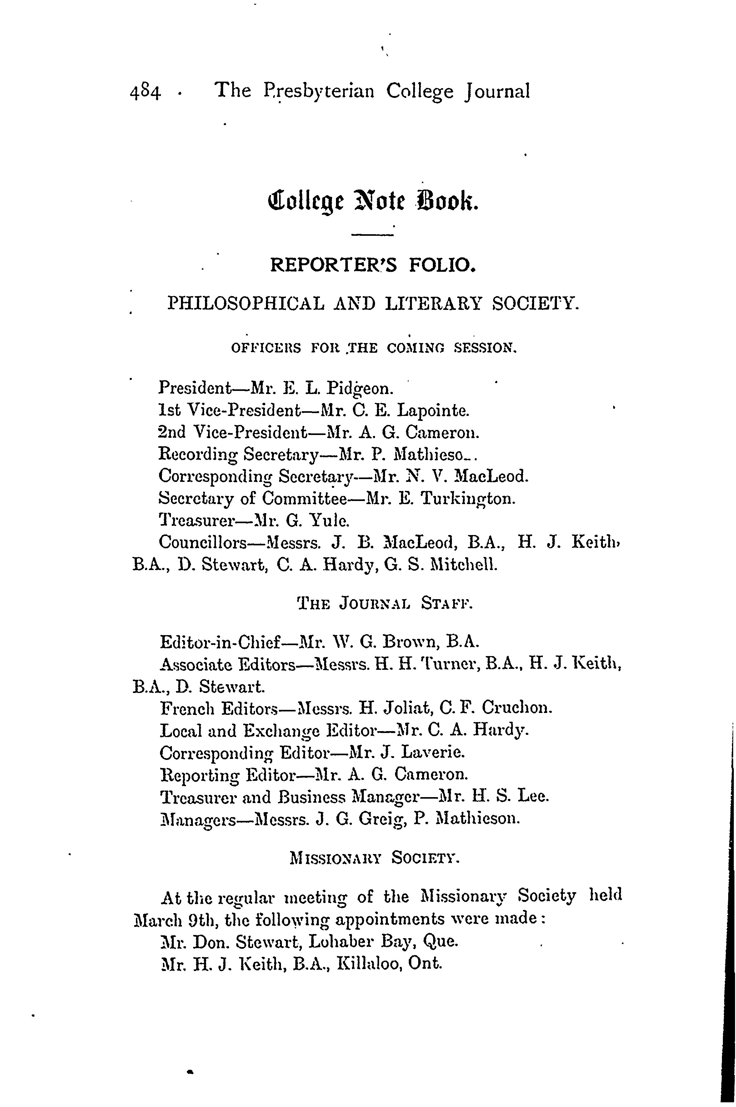 Montreal : Philosophical and Literary Society of the Presbyterian College, [1900]; 104 images avec recherche en texte intégral