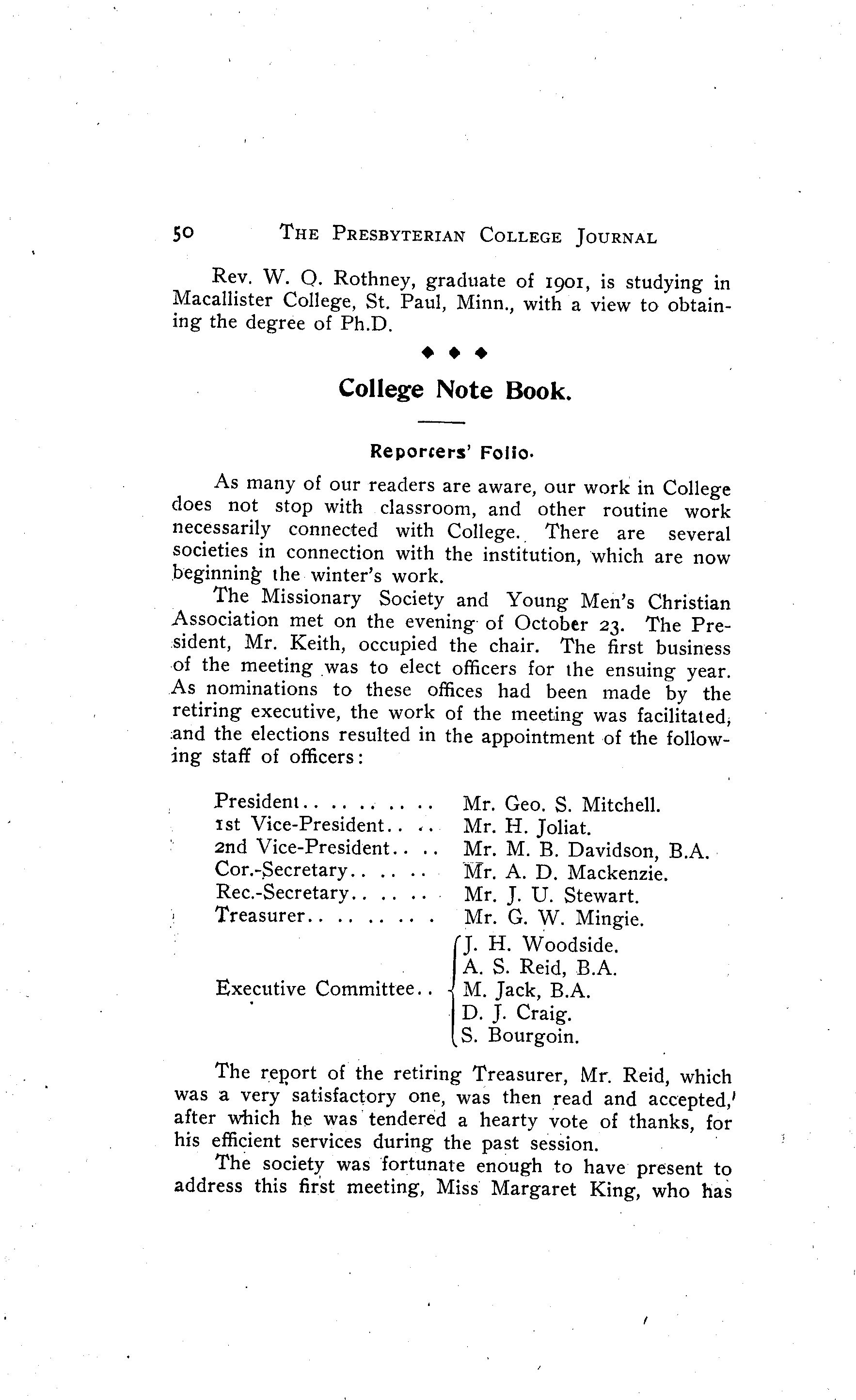 Presbyterian College journal : Vol. 23, no. 1 (Nov. 1903)