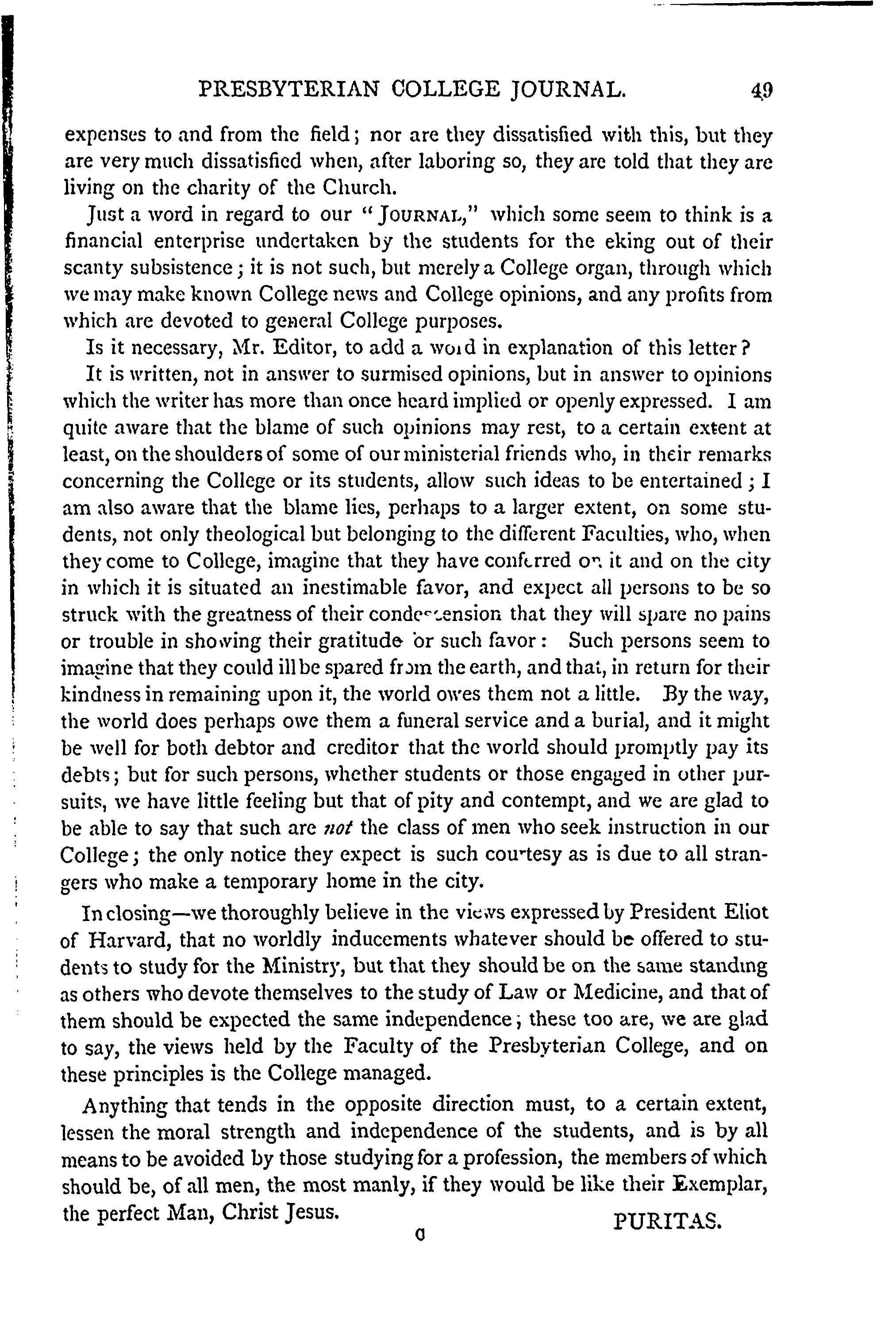Presbyterian College journal : Vol. 5, no. 2 (Nov. 1885)