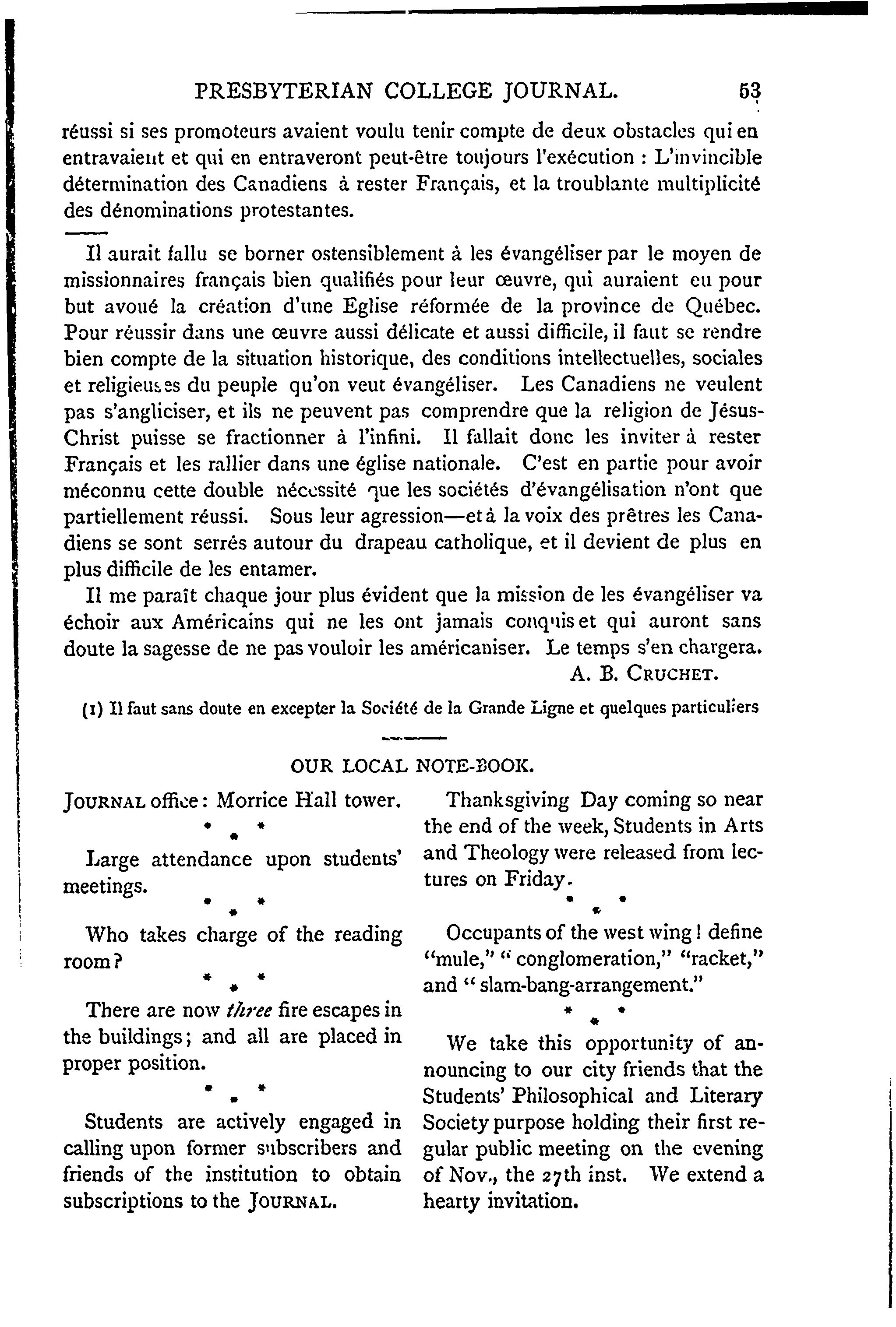 Presbyterian College journal : Vol. 5, no. 2 (Nov. 1885)
