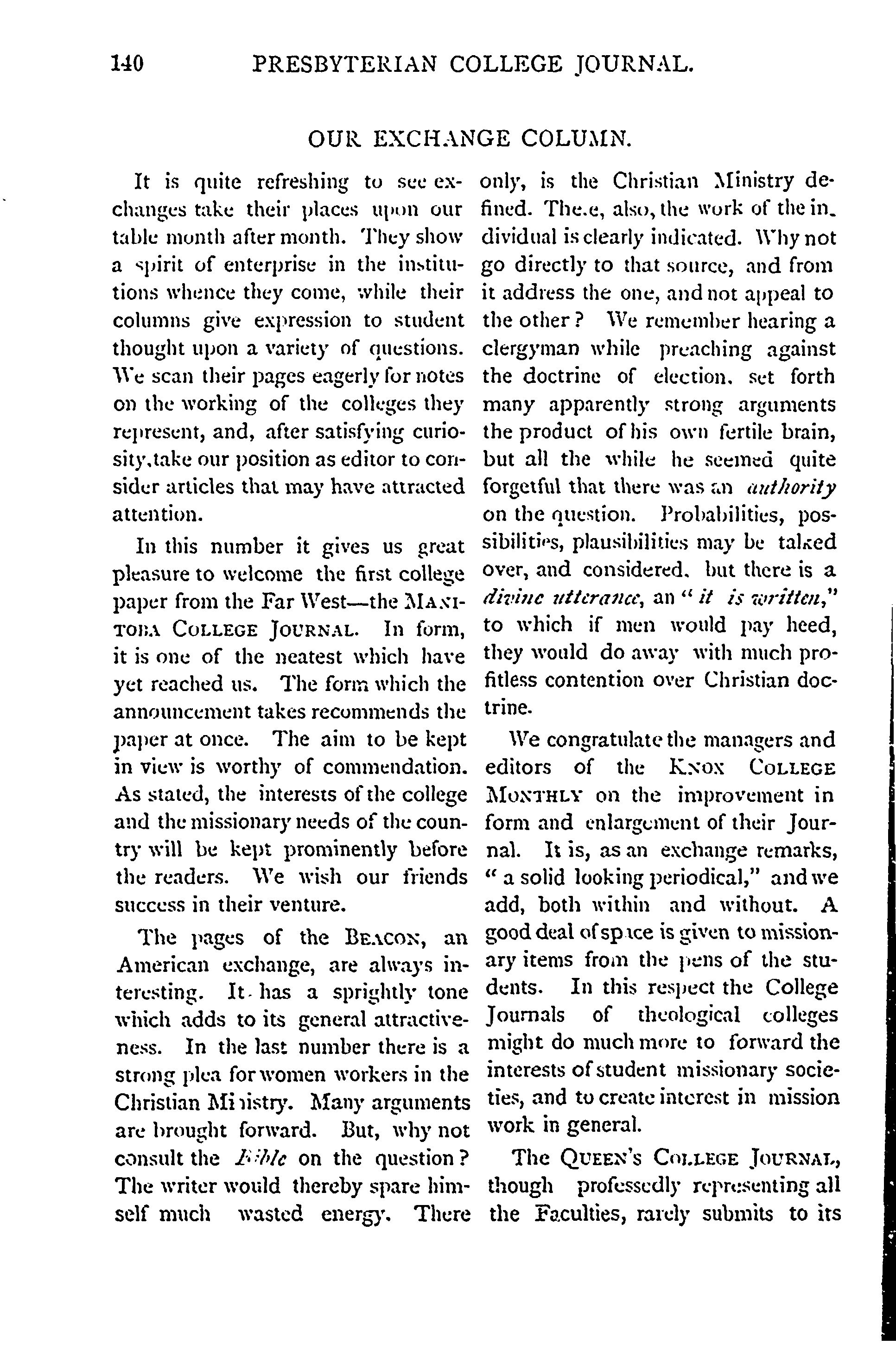 - Presbyterian College journal