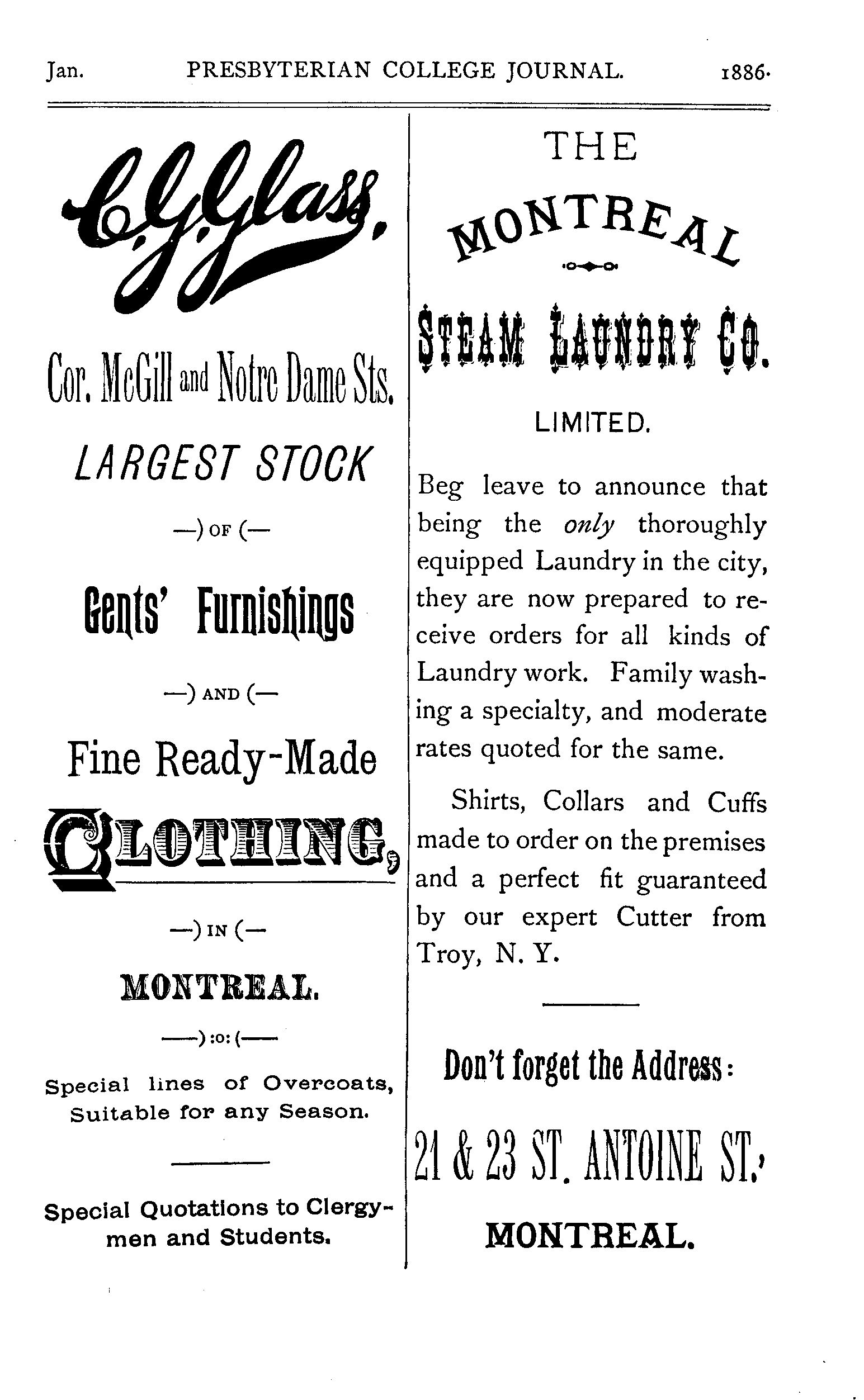 Montreal : Philosophical and Literary Society of the Presbyterian College, [1886]; 37 images, 33 avec recherche en texte intégral