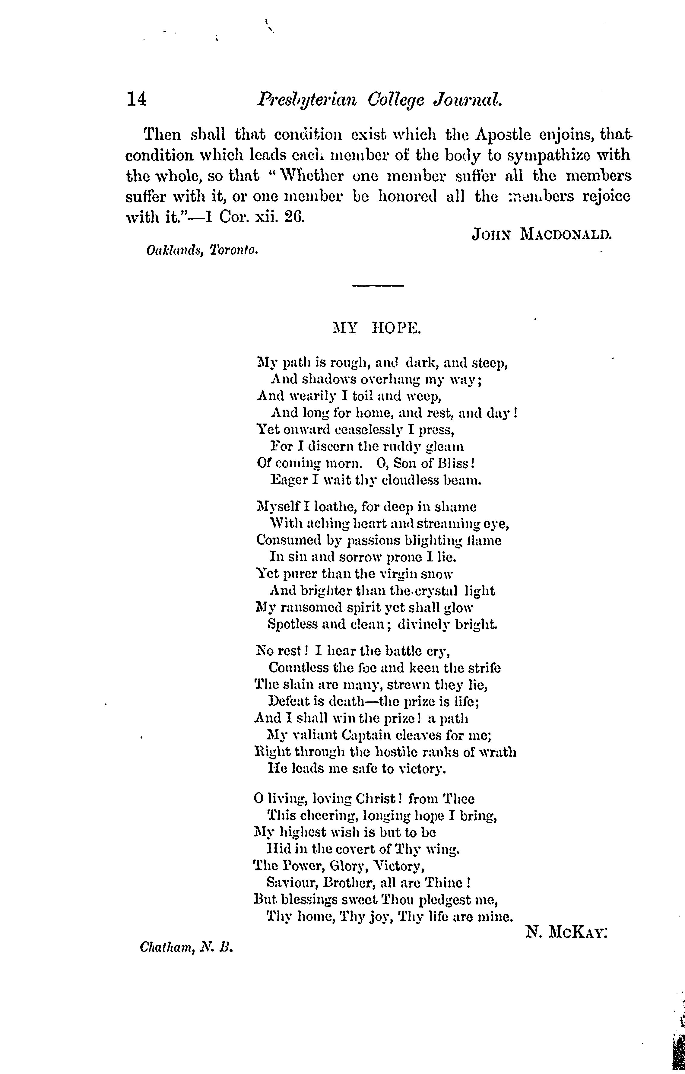 Presbyterian College journal : Vol. 8, no. 1 (Nov. 1888)