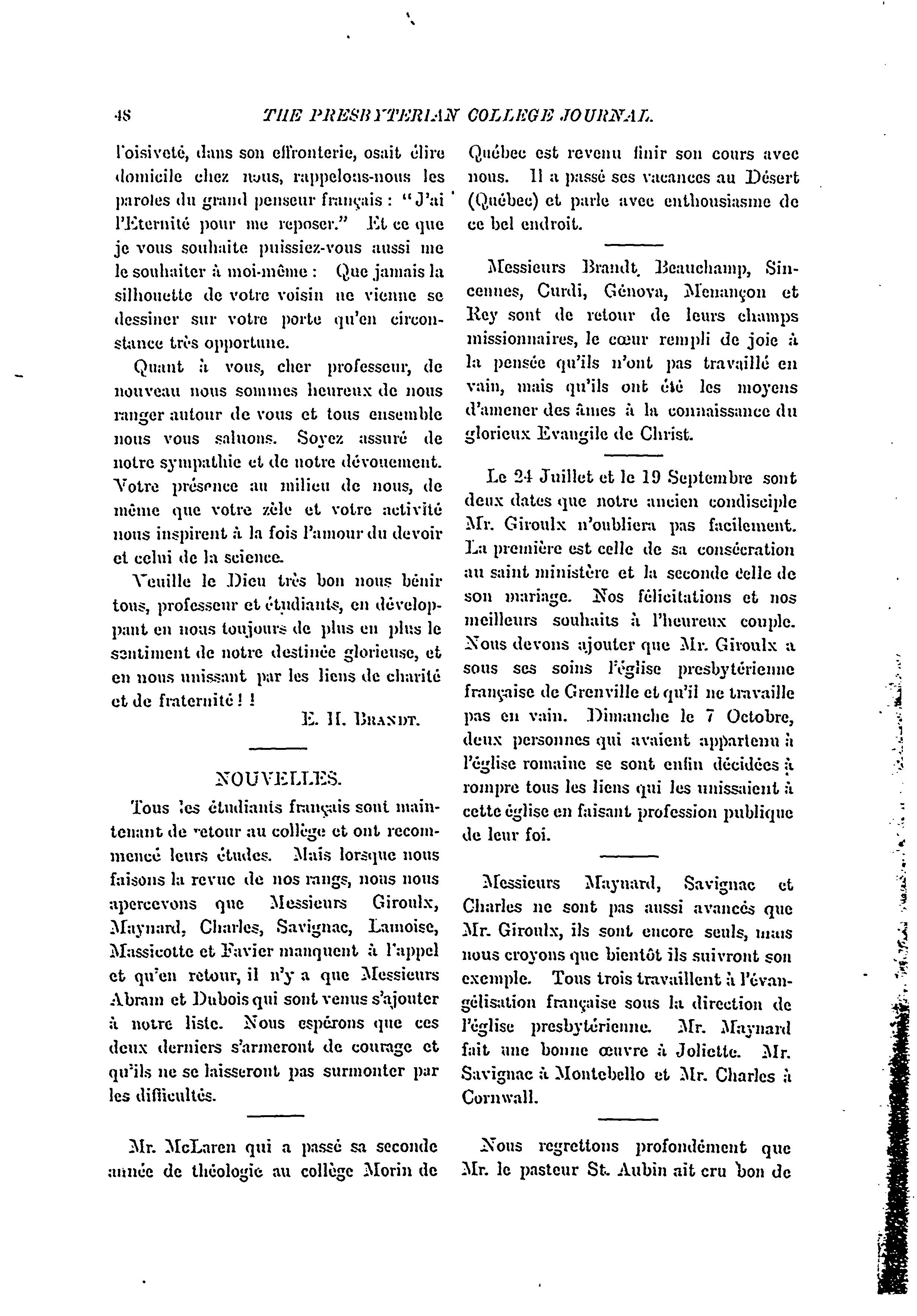 Montreal : Philosophical and Literary Society of the Presbyterian College, [1894]; 68 images avec recherche en texte intégral