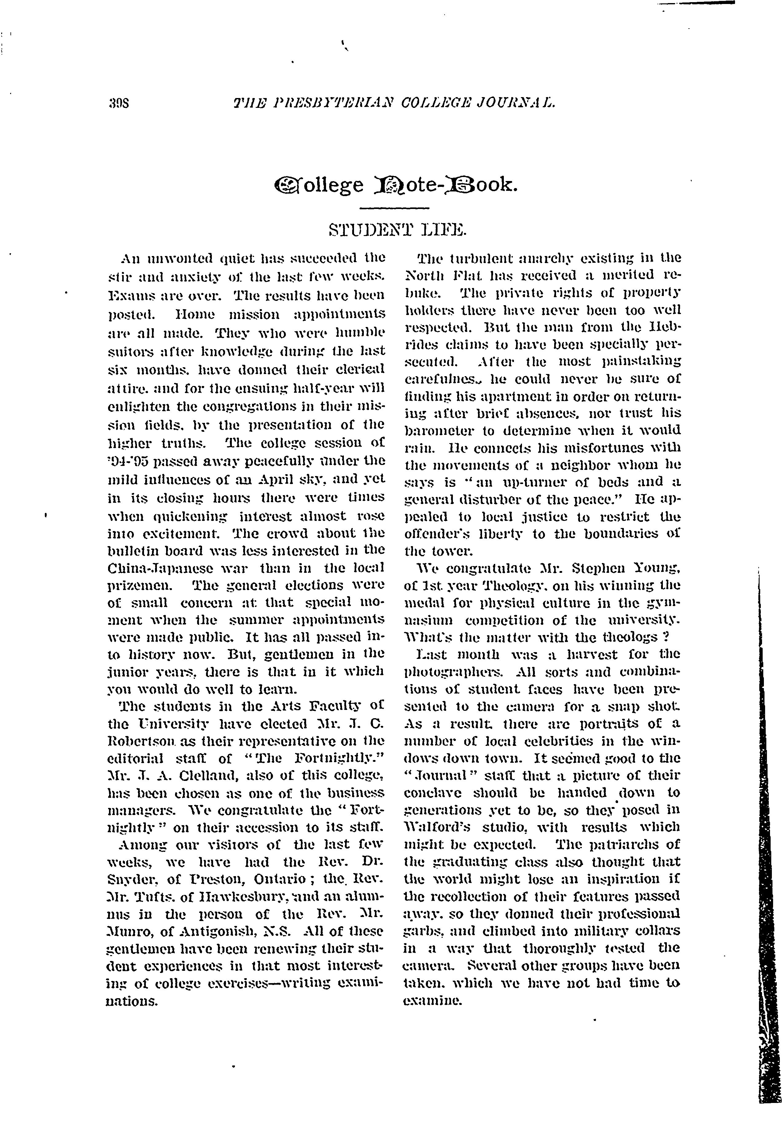 Presbyterian College journal : Vol. 14, no. 6 (Apr. 1895)