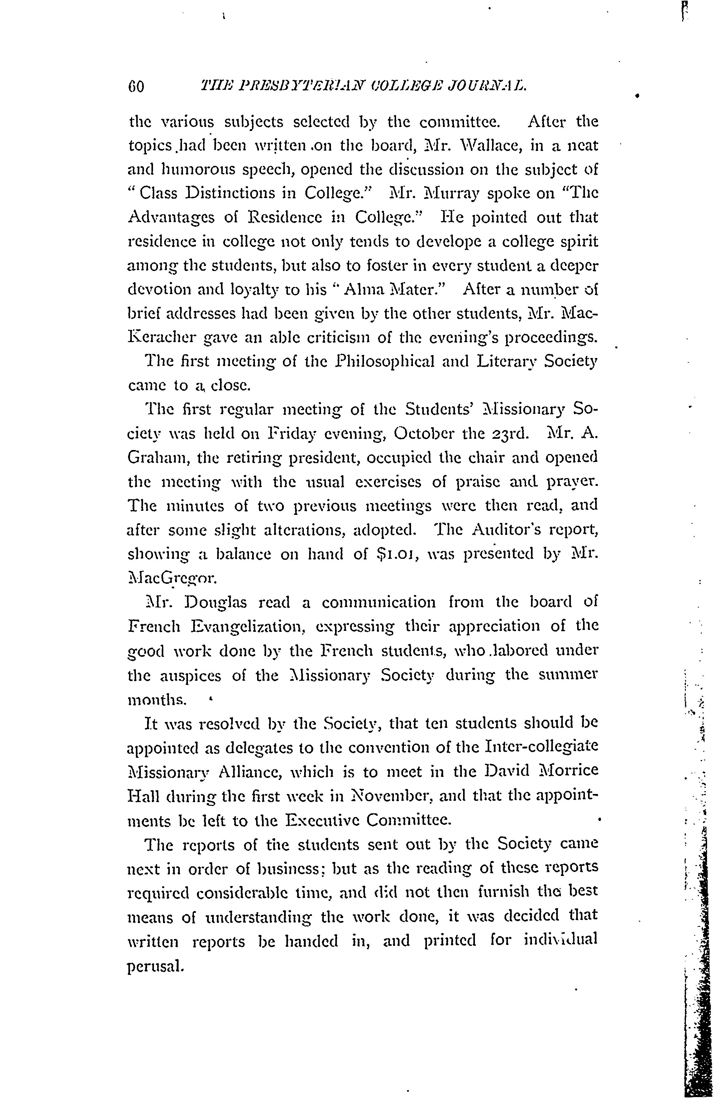 Presbyterian College journal : Vol. 16, no. 1 (Nov. 1896)
