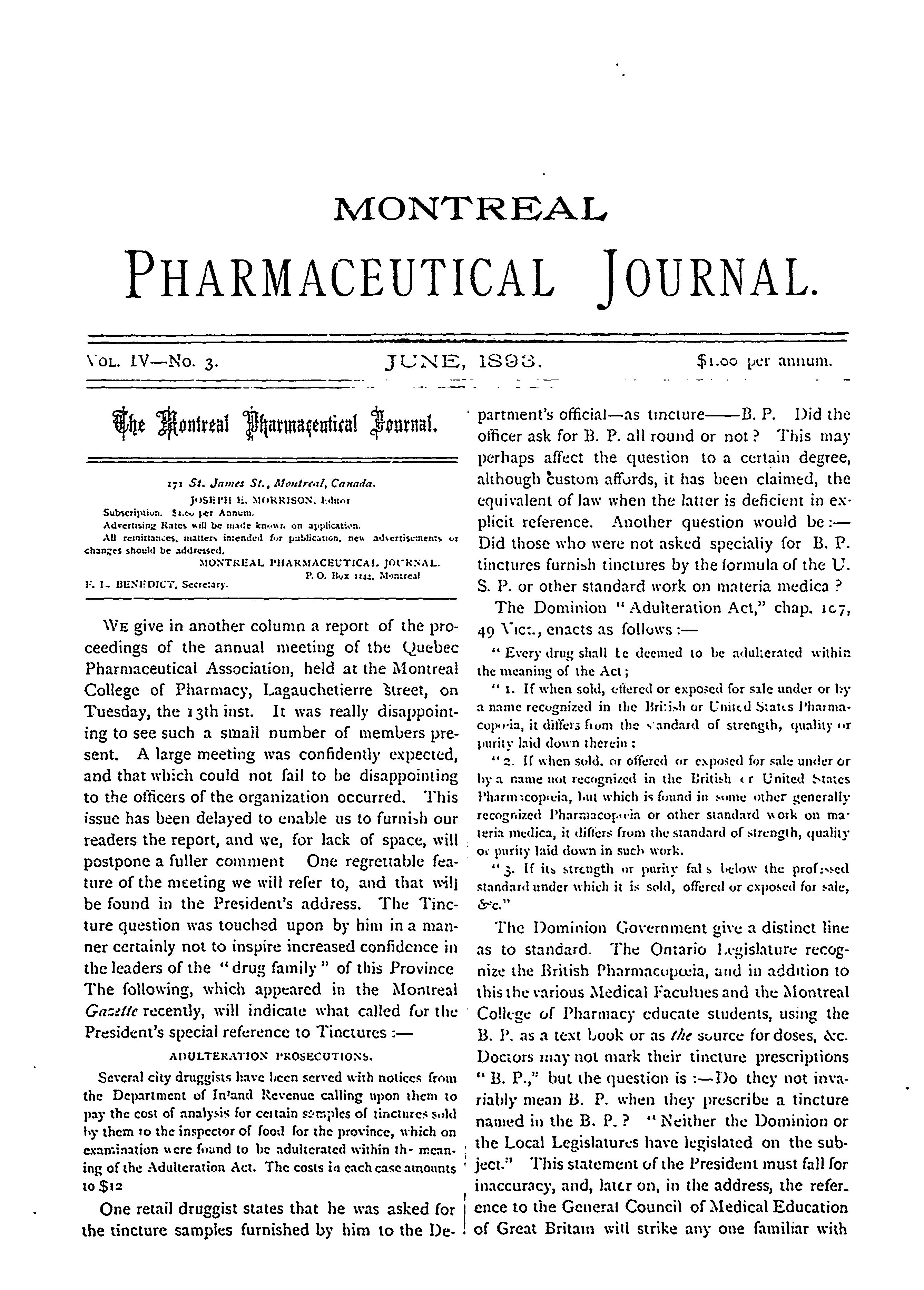 Montreal pharmaceutical journal : [Vol. 4, no. 3 (June 1893)]