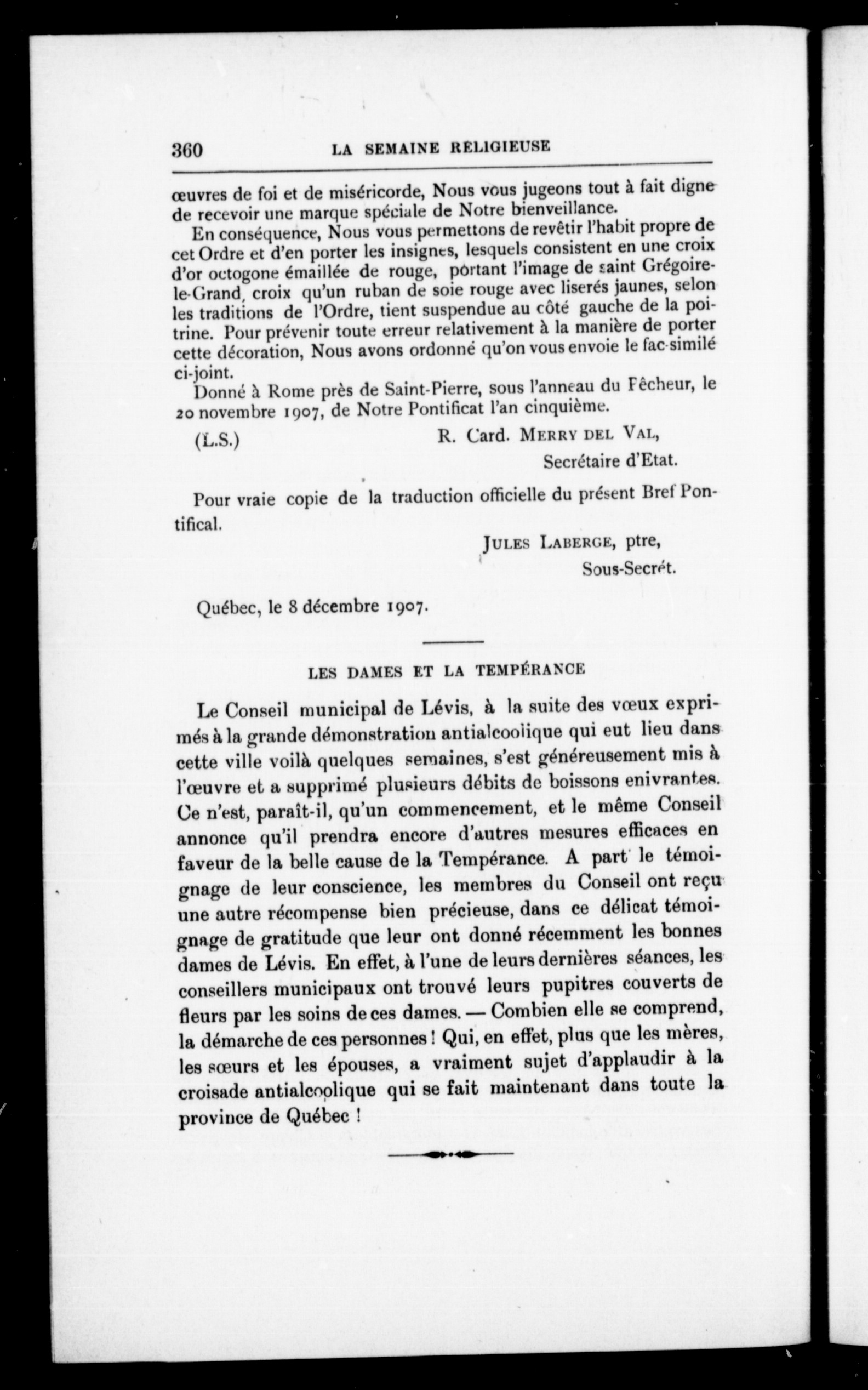 La semaine religieuse de Québec : Vol. 20, no 23 (18 janv. 1908)