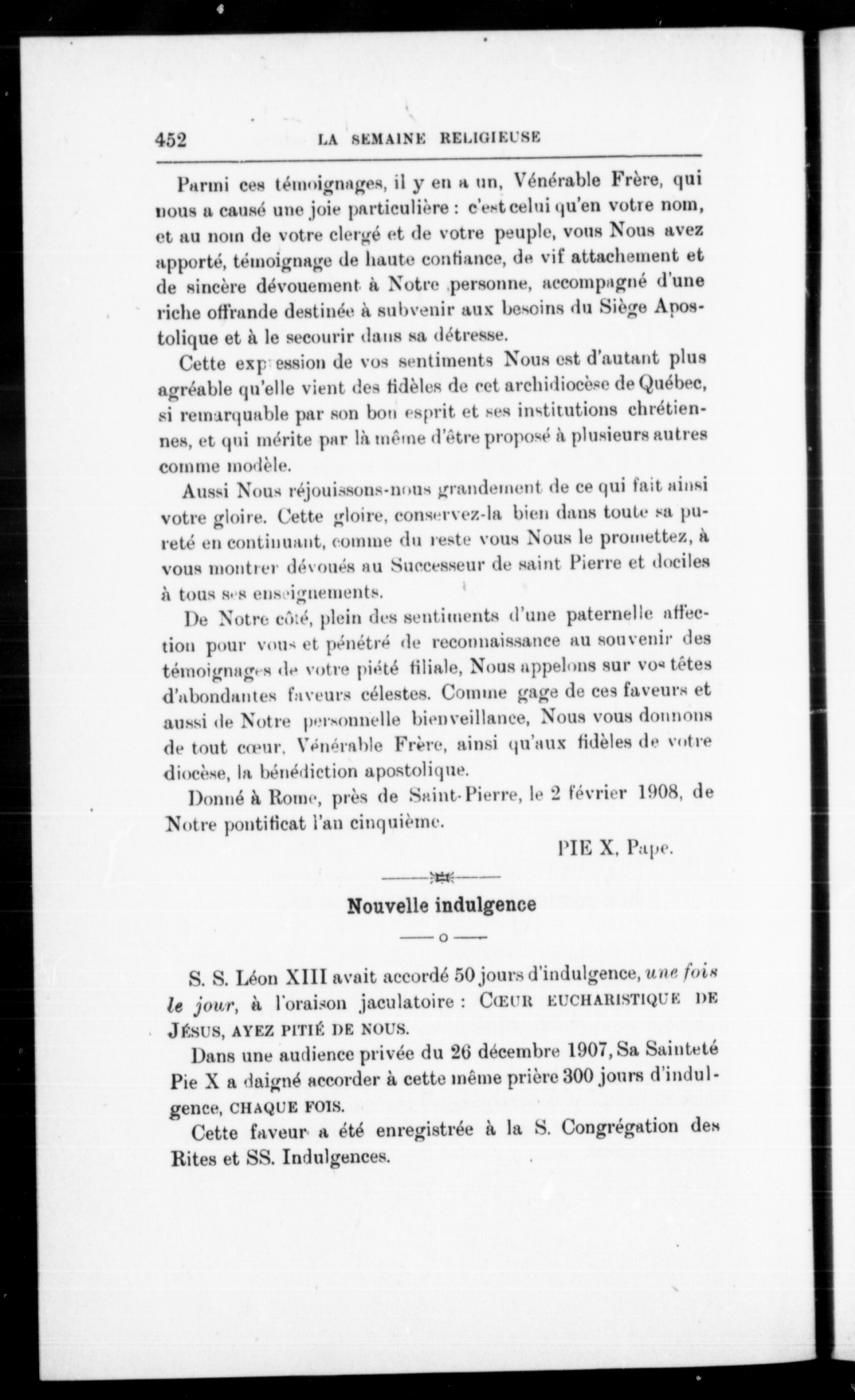 La semaine religieuse de Québec : Vol. 20, no 29 (29 févr. 1908)