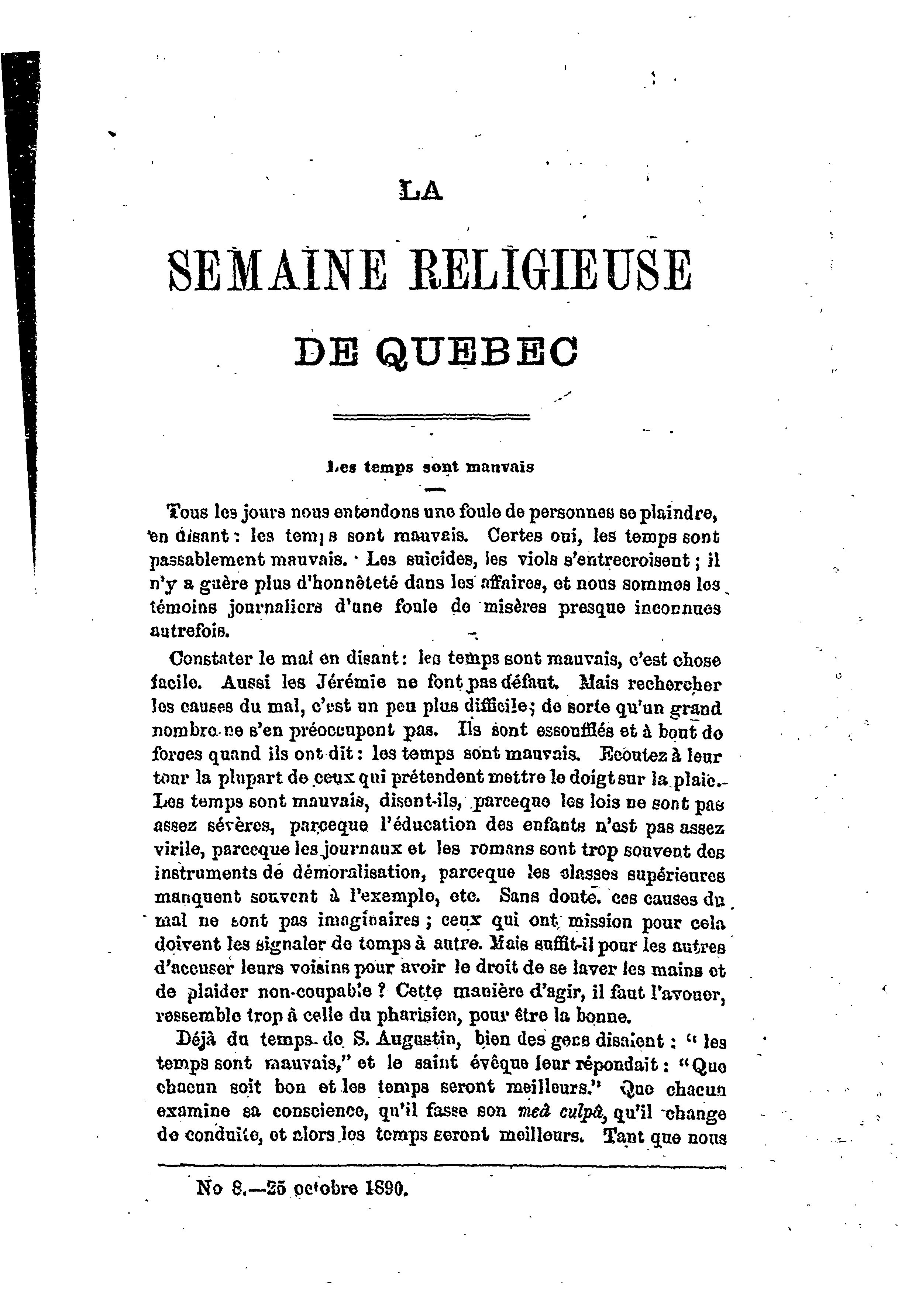 - La semaine religieuse de Québec [3e année, no 8 (25 oct. 1890)]