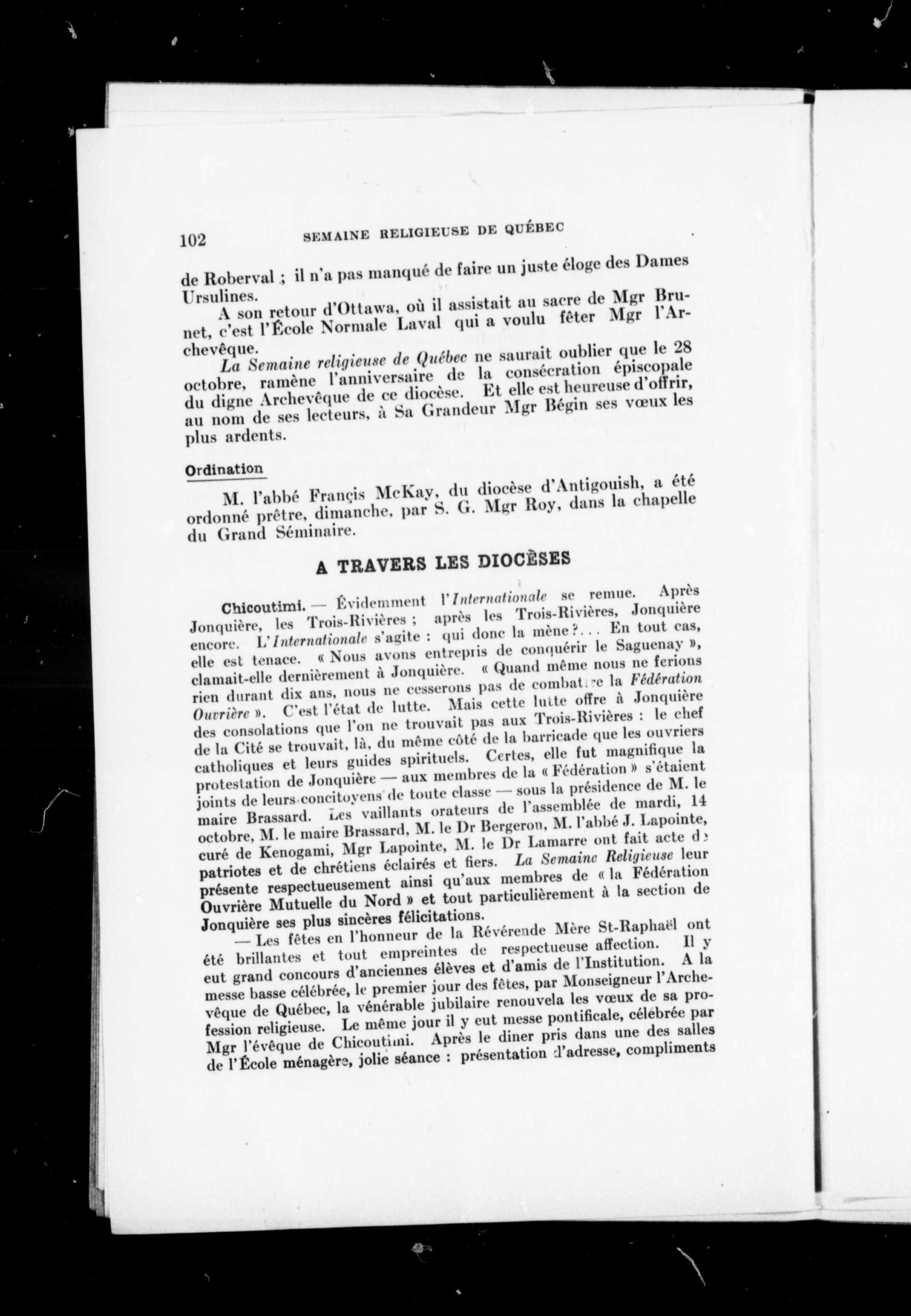- Semaine religieuse de Québec et Bulletin des oeuvres de l'Action sociale catholique