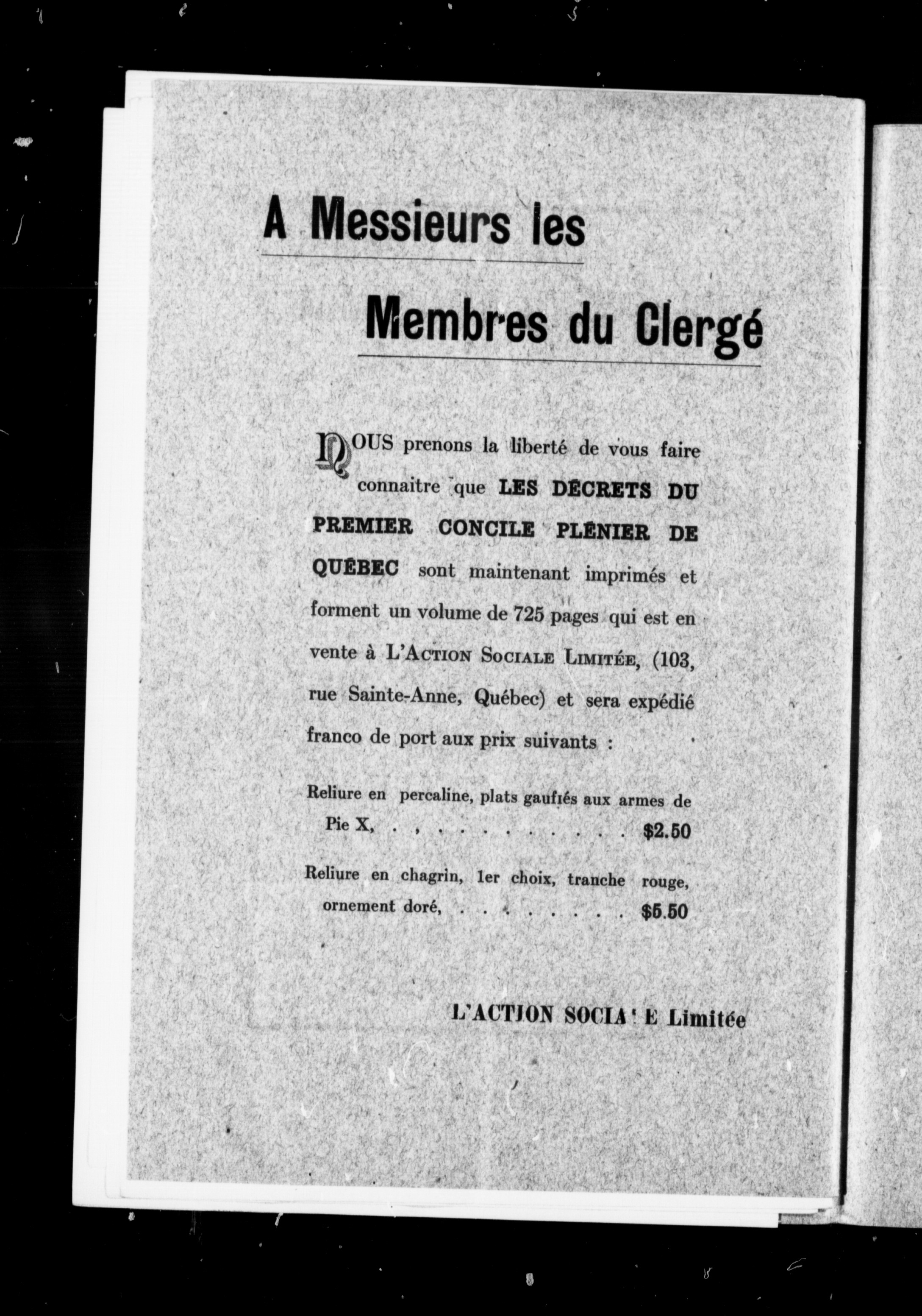 - Semaine religieuse de Québec et Bulletin des oeuvres de l'Action sociale catholique