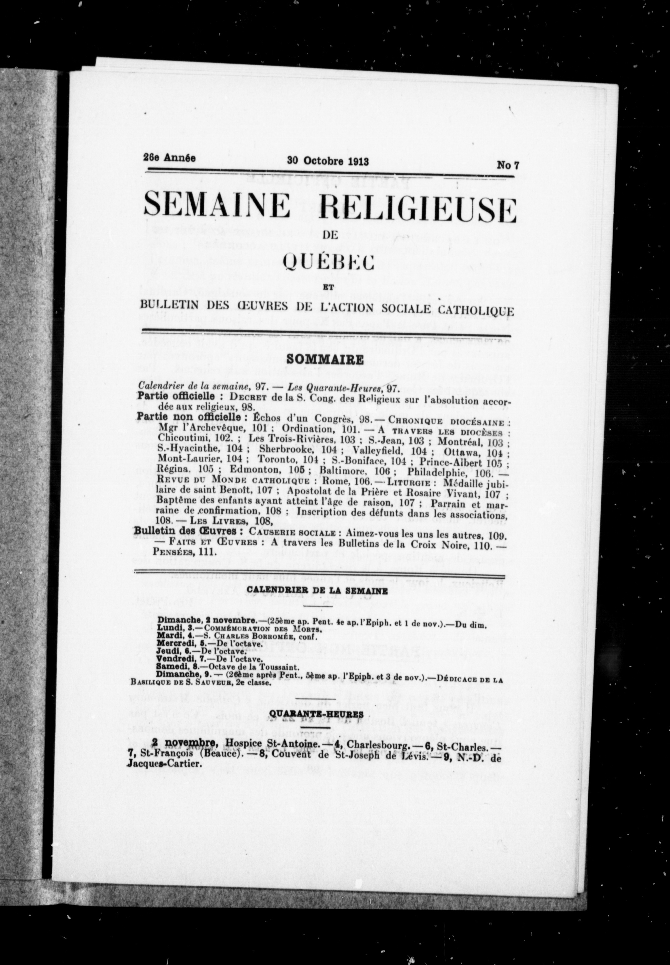 La semaine religieuse de Québec : 26e année, no 7 (30 oct. 1913)