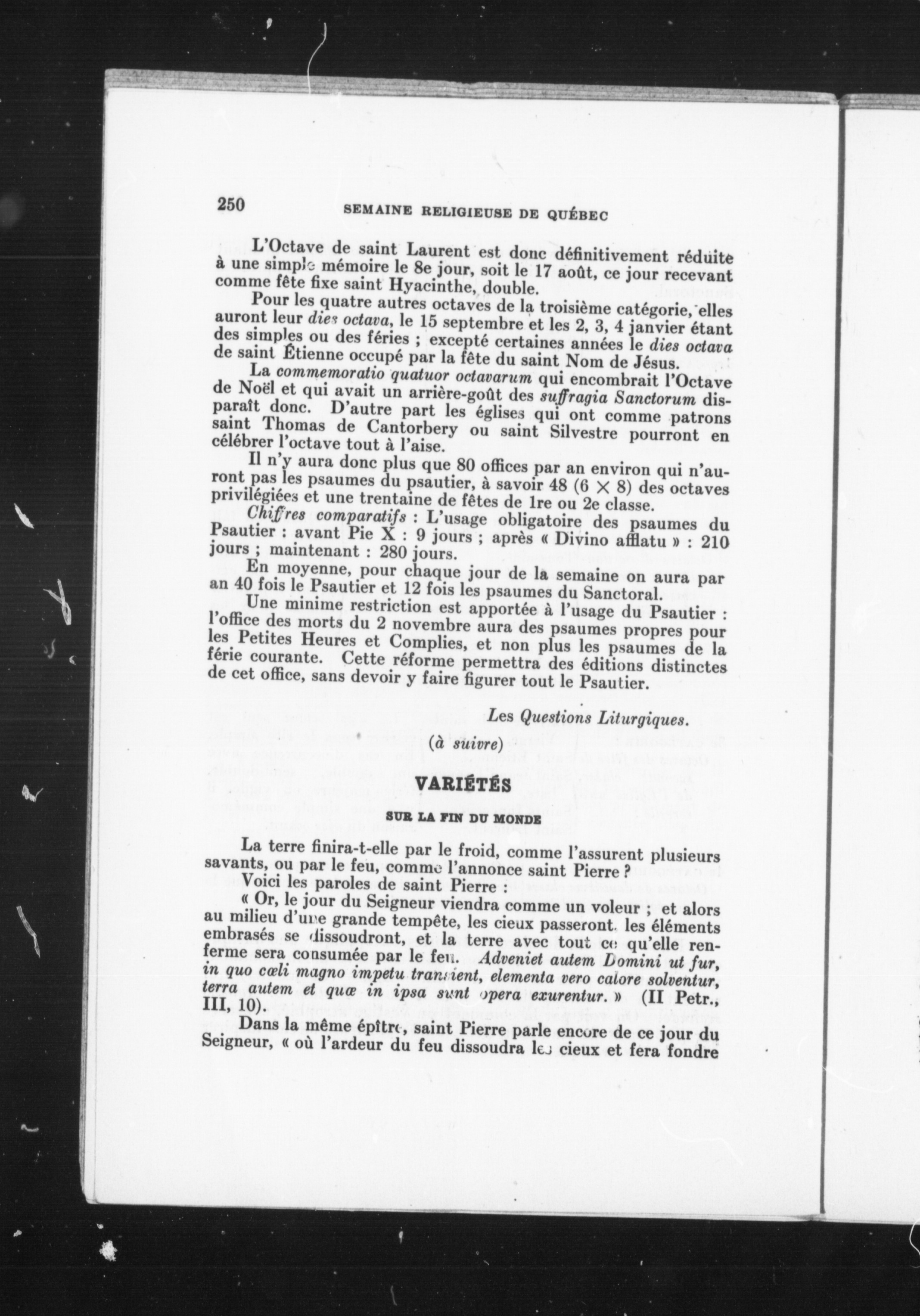 - Semaine religieuse de Québec et Bulletin des oeuvres de l'Action sociale catholique