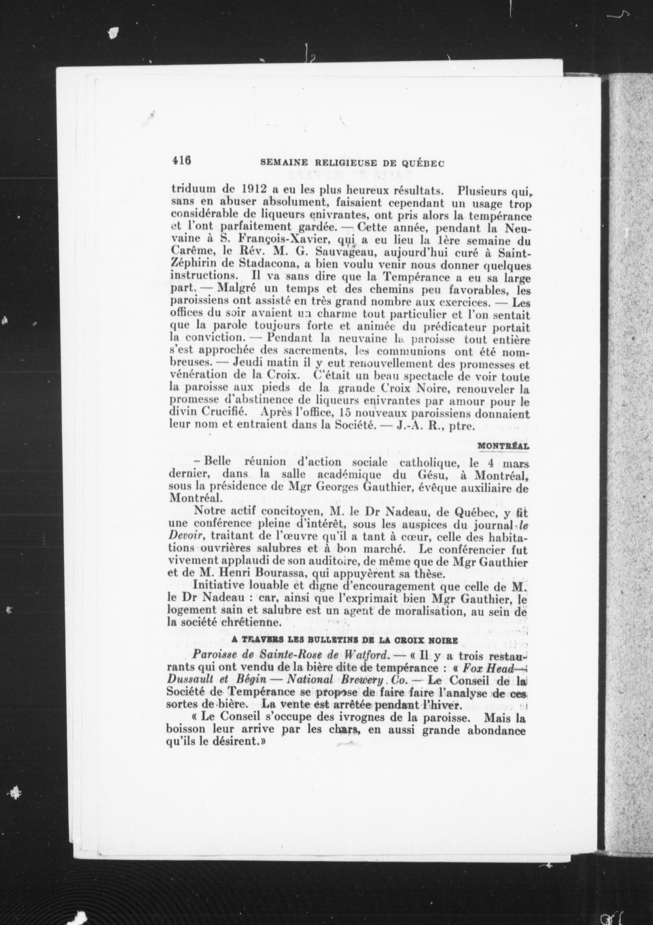 - Semaine religieuse de Québec et Bulletin des oeuvres de l'Action sociale catholique