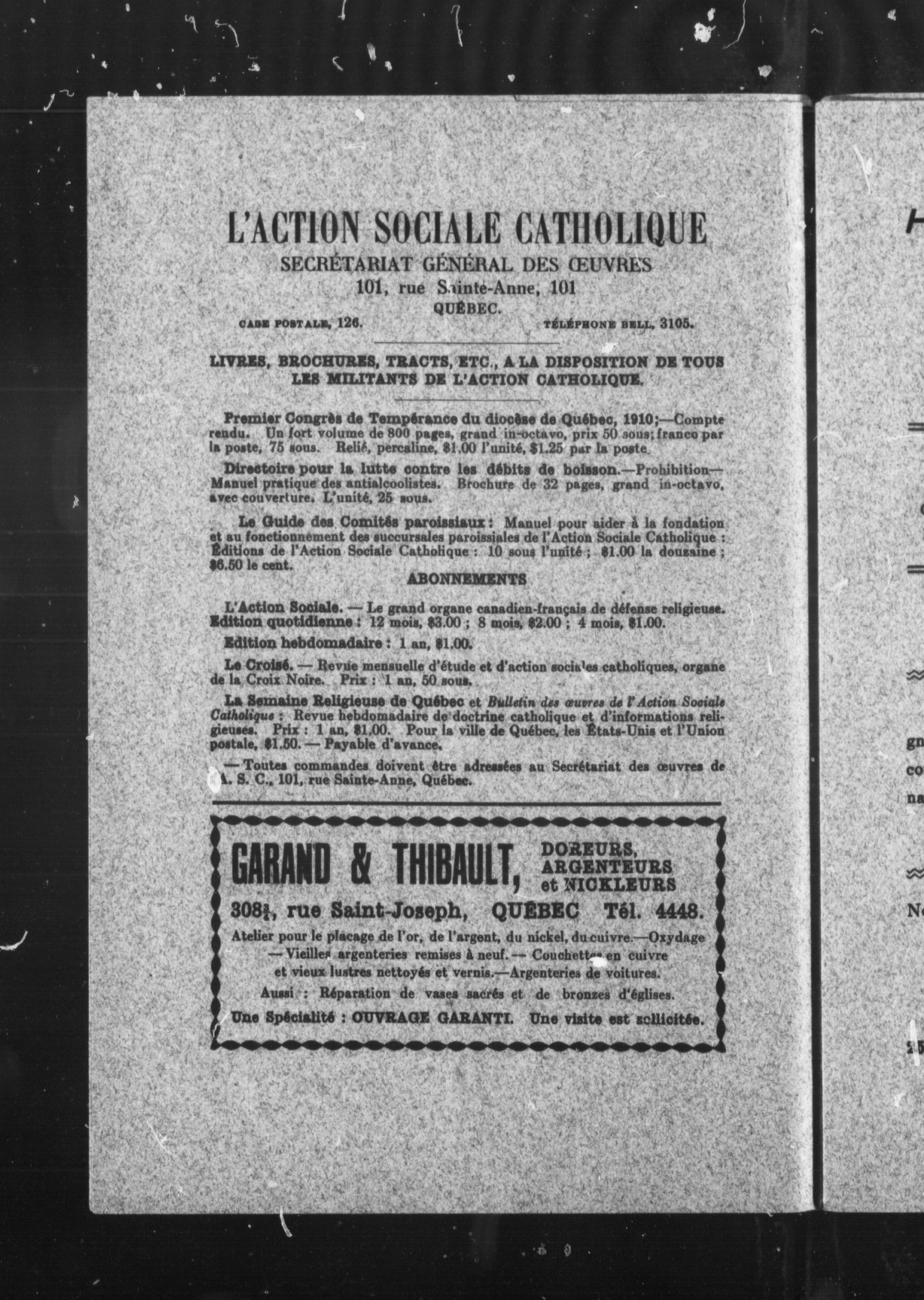 Semaine religieuse de Québec et Bulletin des oeuvres de l'Action sociale catholique