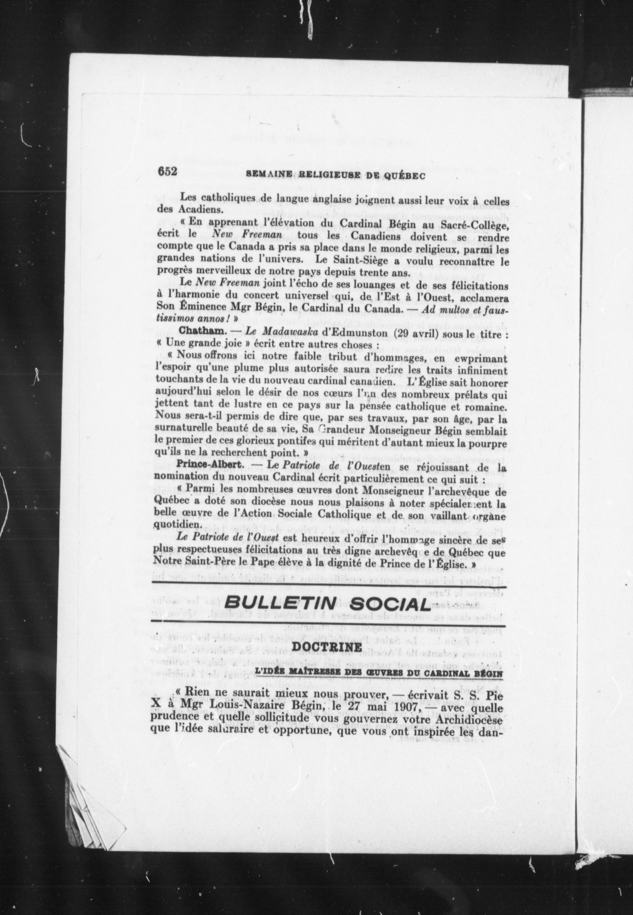 Semaine religieuse de Québec et Bulletin des oeuvres de l'Action sociale catholique