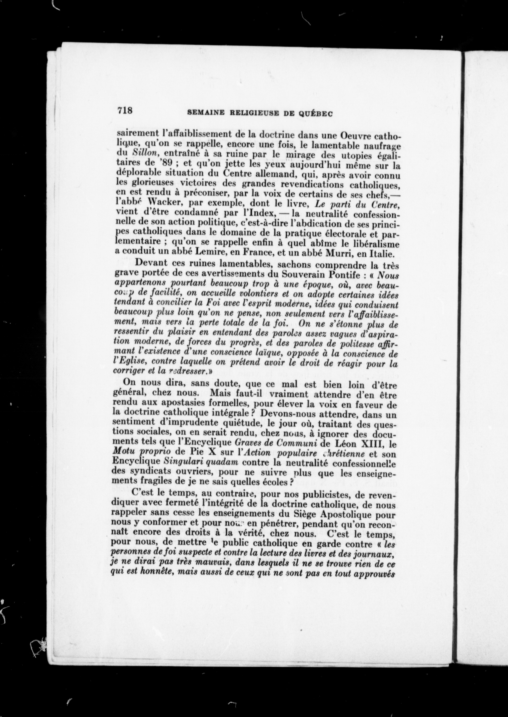 - Semaine religieuse de Québec et Bulletin des oeuvres de l'Action sociale catholique