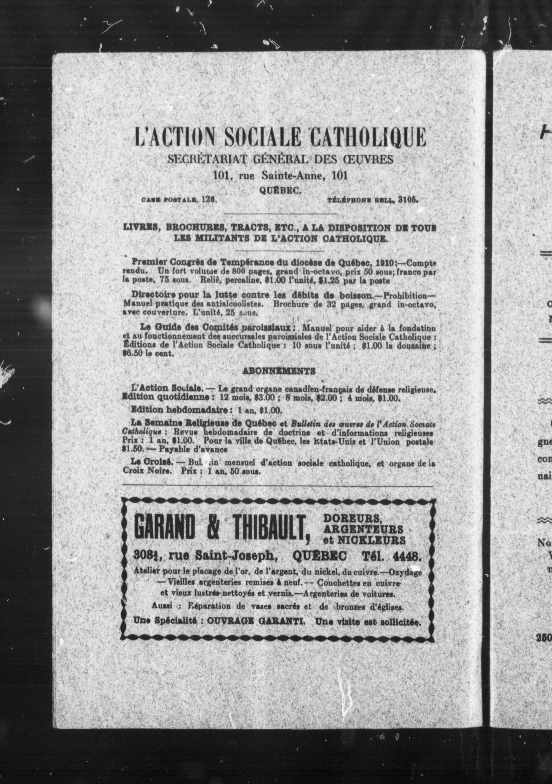 - Semaine religieuse de Québec et Bulletin des oeuvres de l'Action sociale catholique