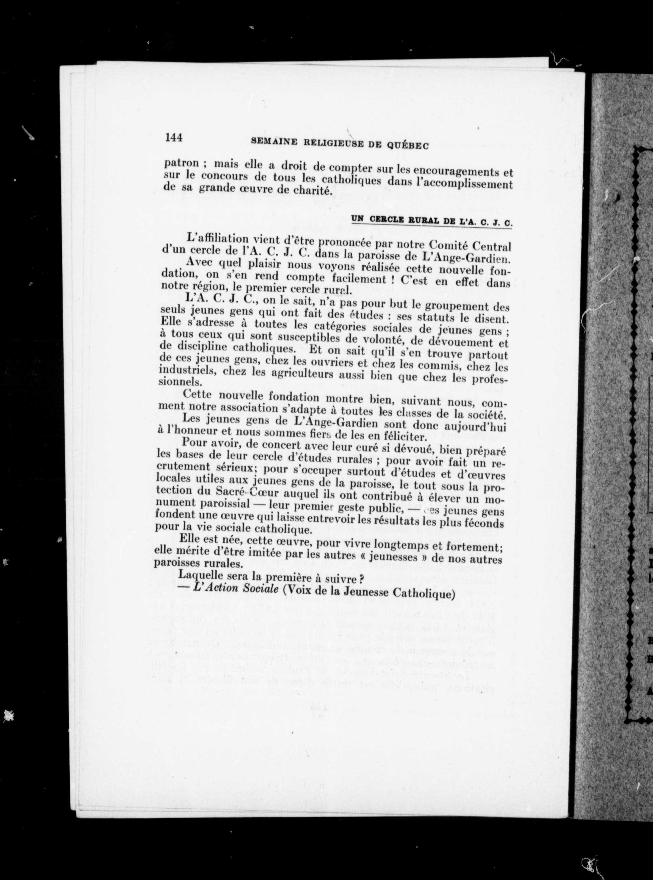 - Semaine religieuse de Québec et Bulletin des oeuvres de l'Action sociale catholique