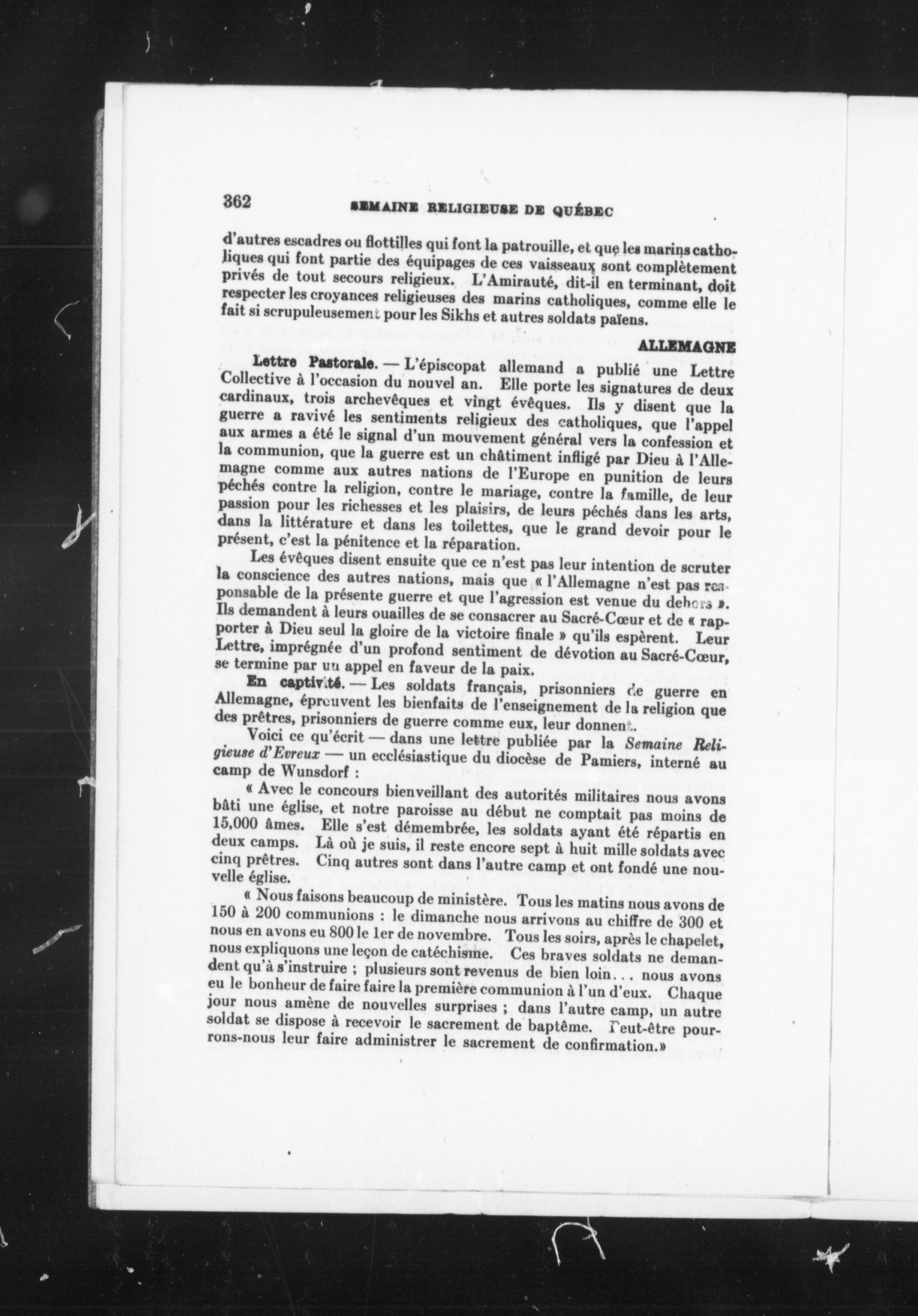 La semaine religieuse de Québec : 27e année, no 23 (4 févr. 1915)