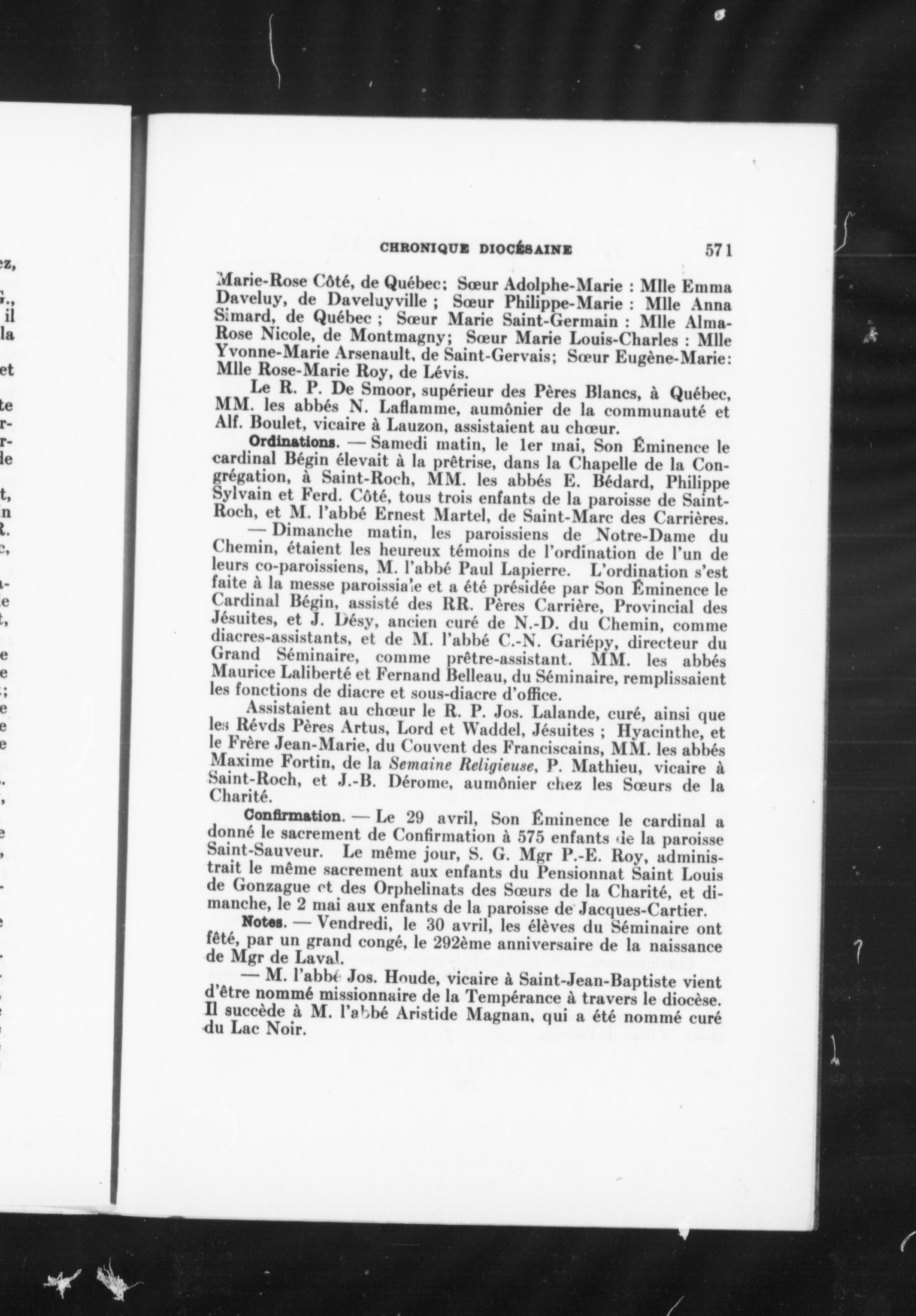 Semaine religieuse de Québec et Bulletin des oeuvres de l'Action sociale catholique