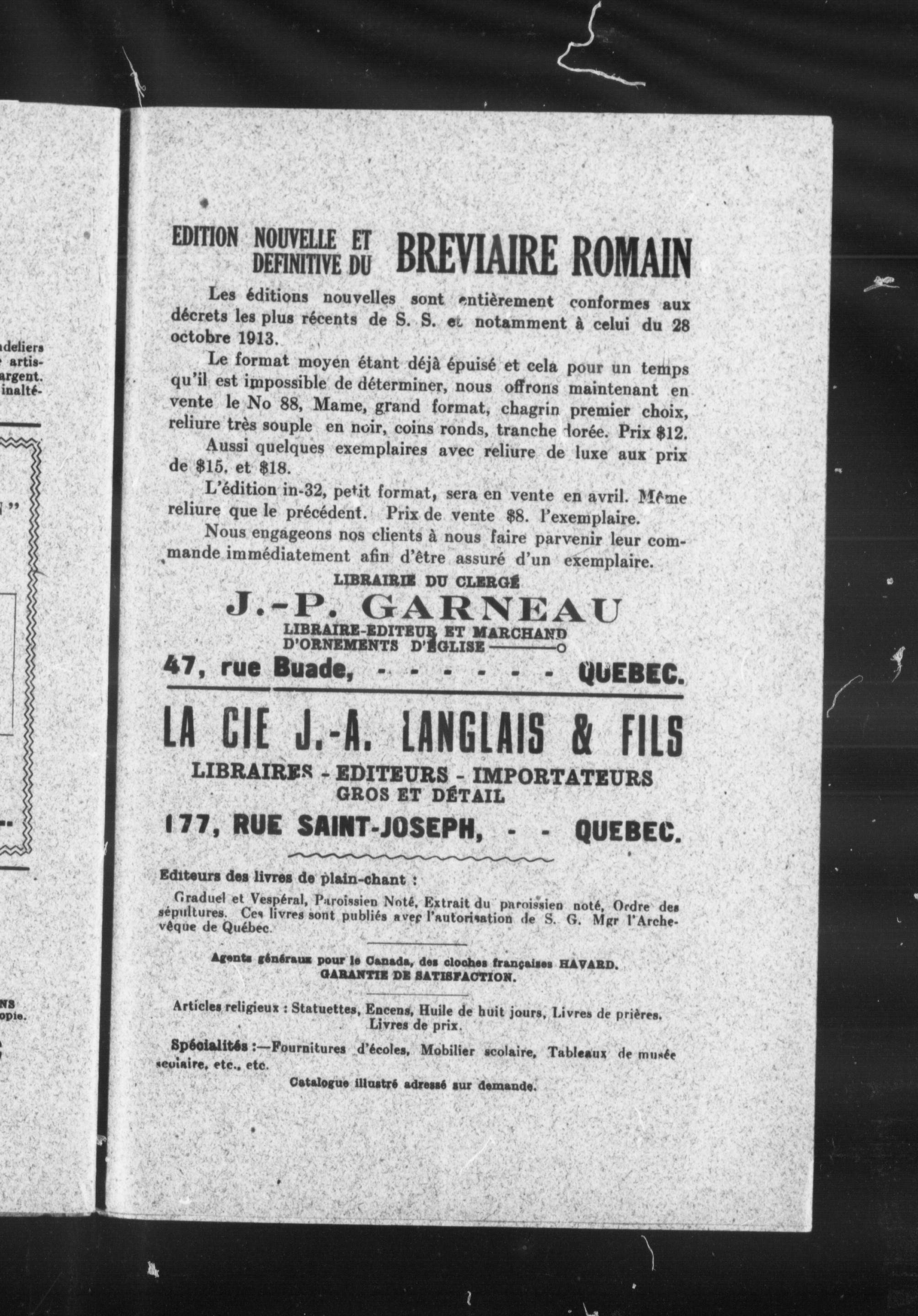 Semaine religieuse de Québec et Bulletin des oeuvres de l'Action sociale catholique