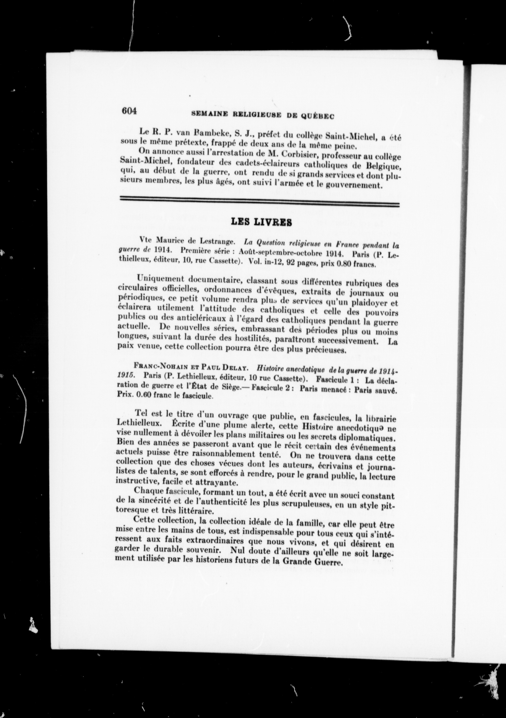 - Semaine religieuse de Québec et Bulletin des oeuvres de l'Action sociale catholique
