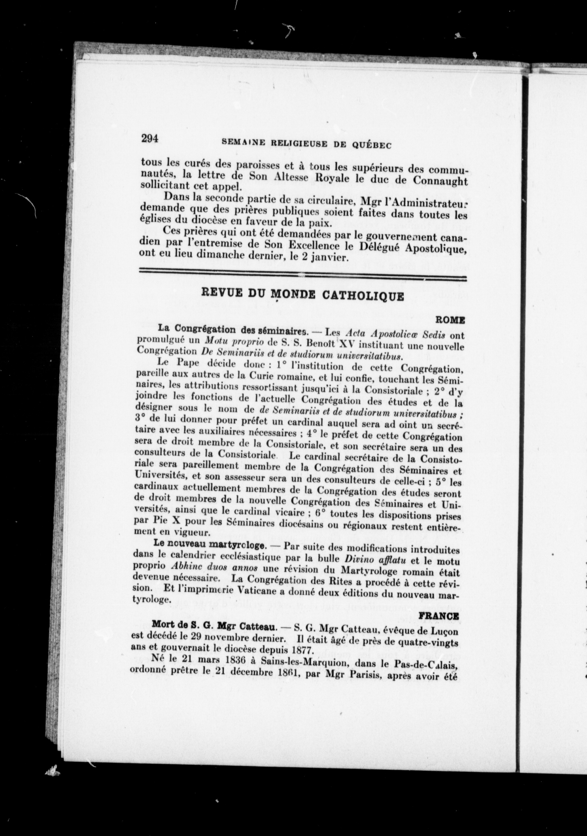 La semaine religieuse de Québec : 28e année, no 19 (5 janv. 1916)