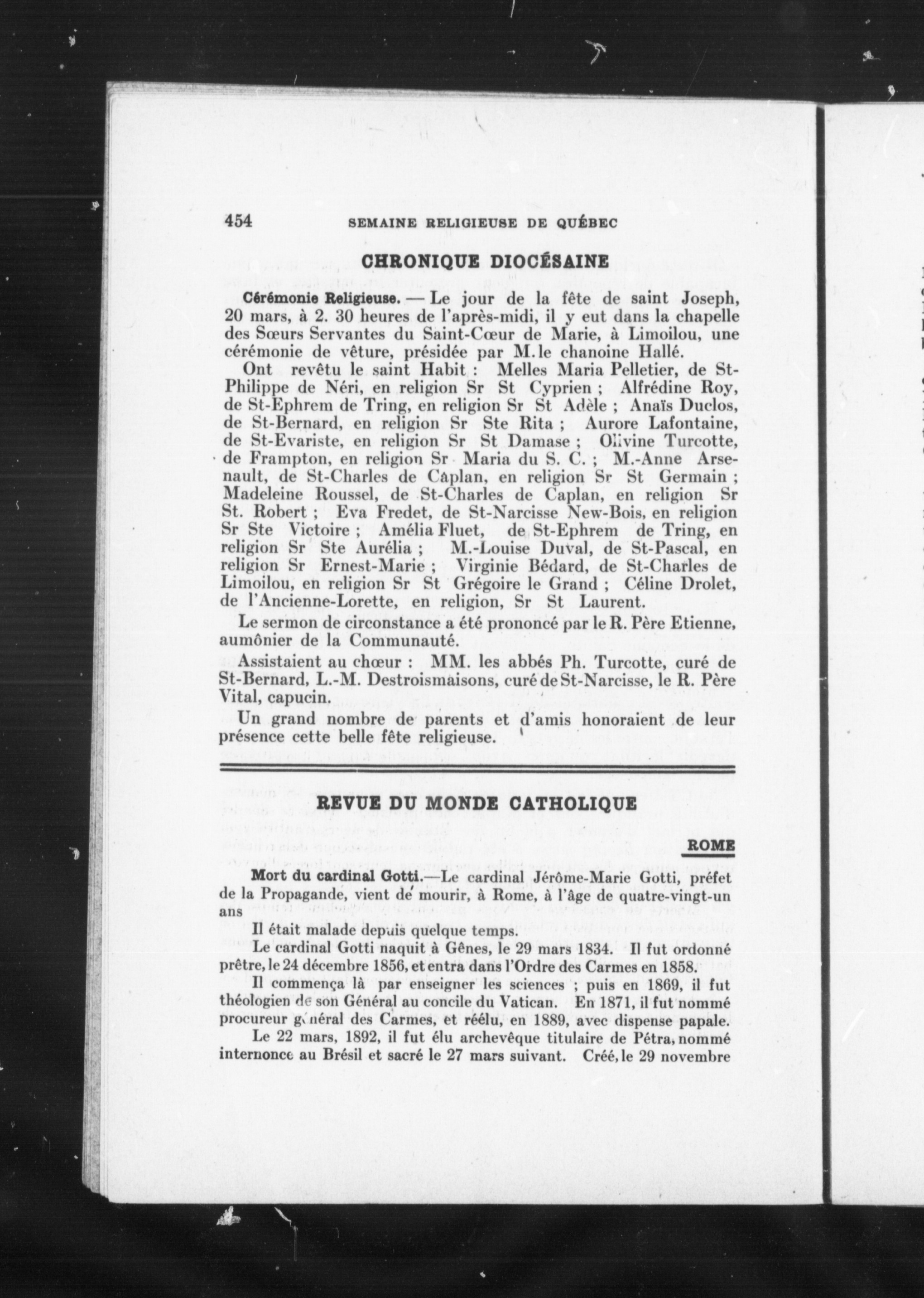 - Semaine religieuse de Québec et Bulletin des oeuvres de l'Action sociale catholique