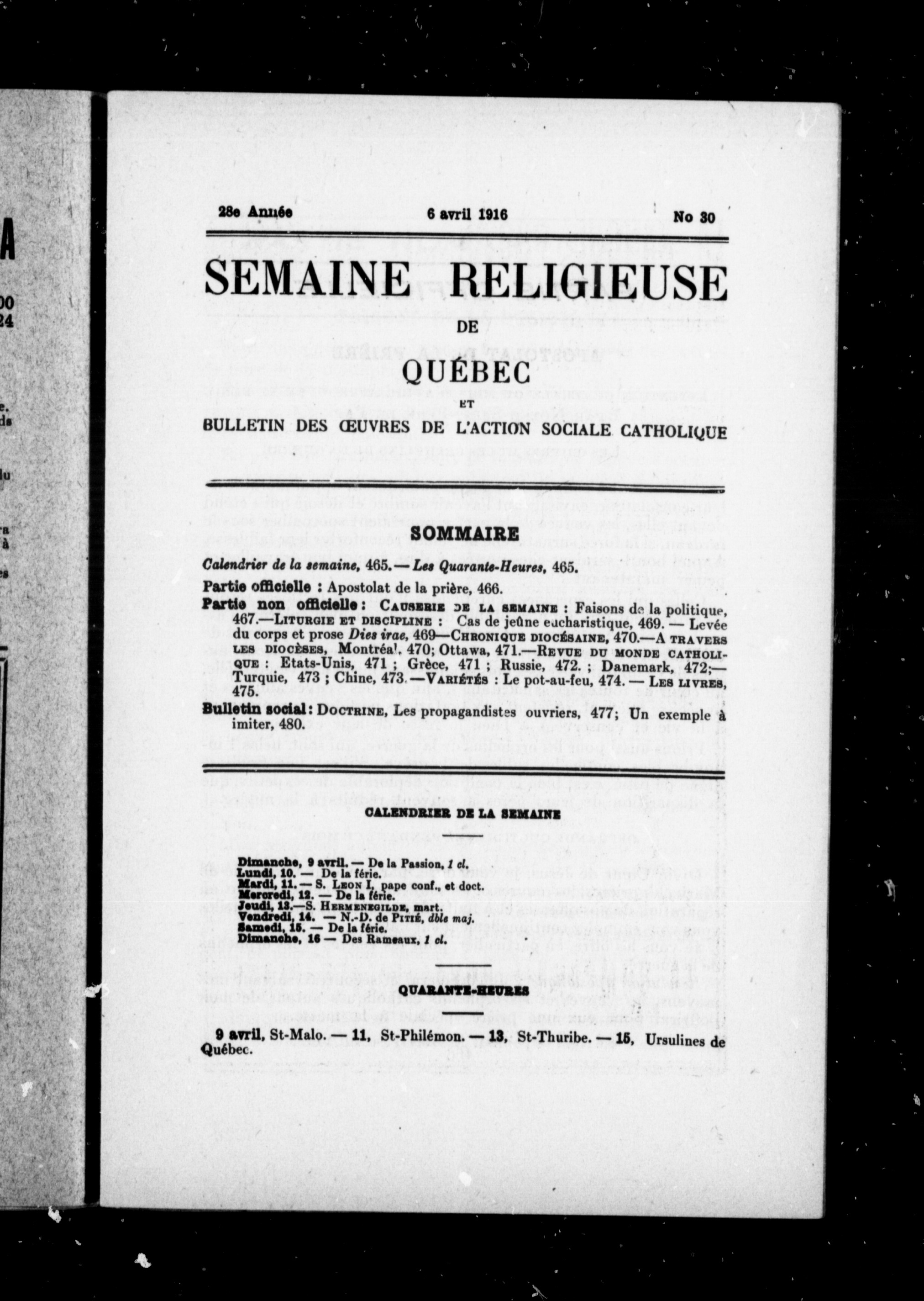 La semaine religieuse de Québec : 28e année, no 30 (6 avril 1916)