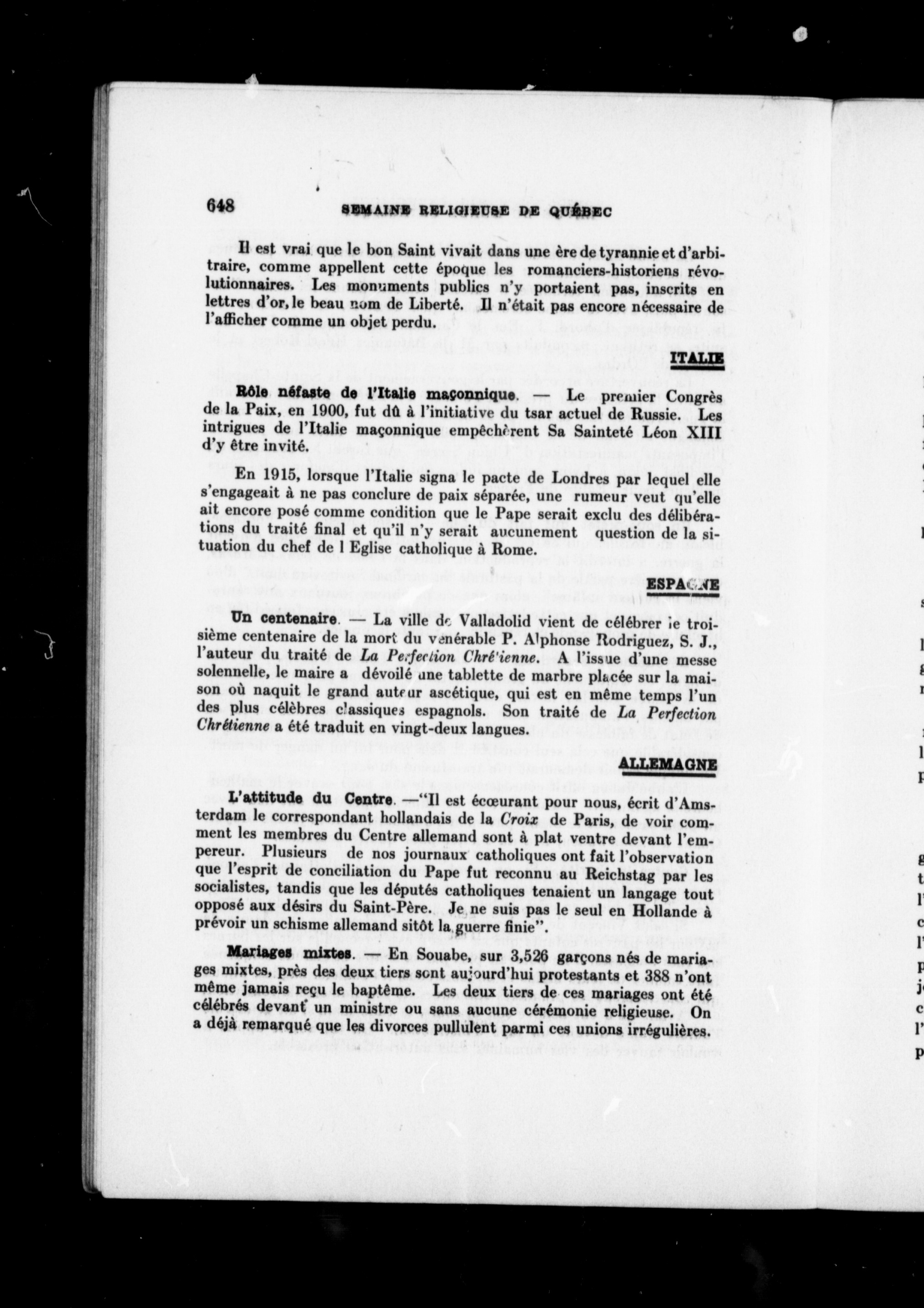 - Semaine religieuse de Québec et Bulletin des oeuvres de l'Action sociale catholique