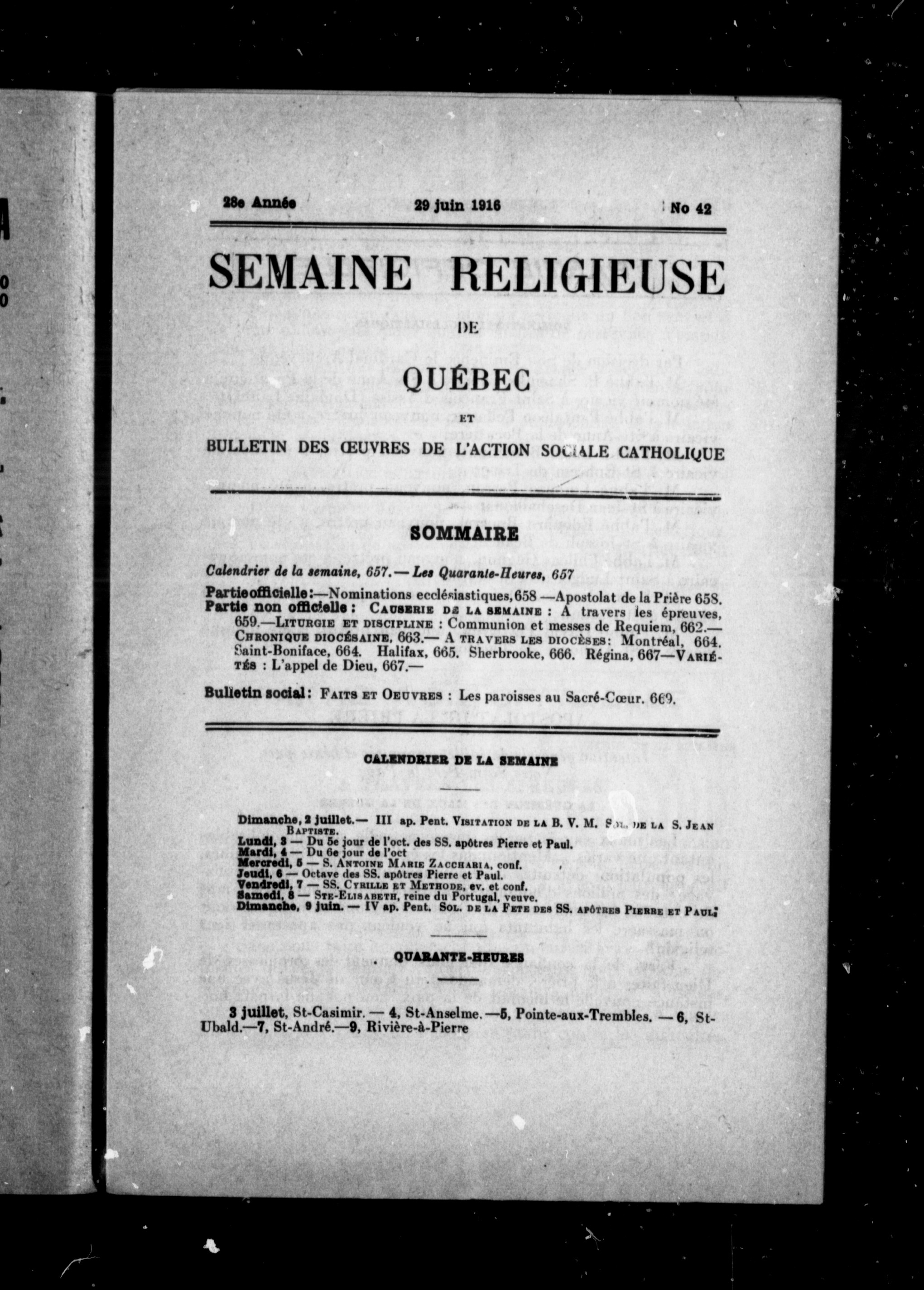 La semaine religieuse de Québec : 28e année, no 42 (29 juin 1916)