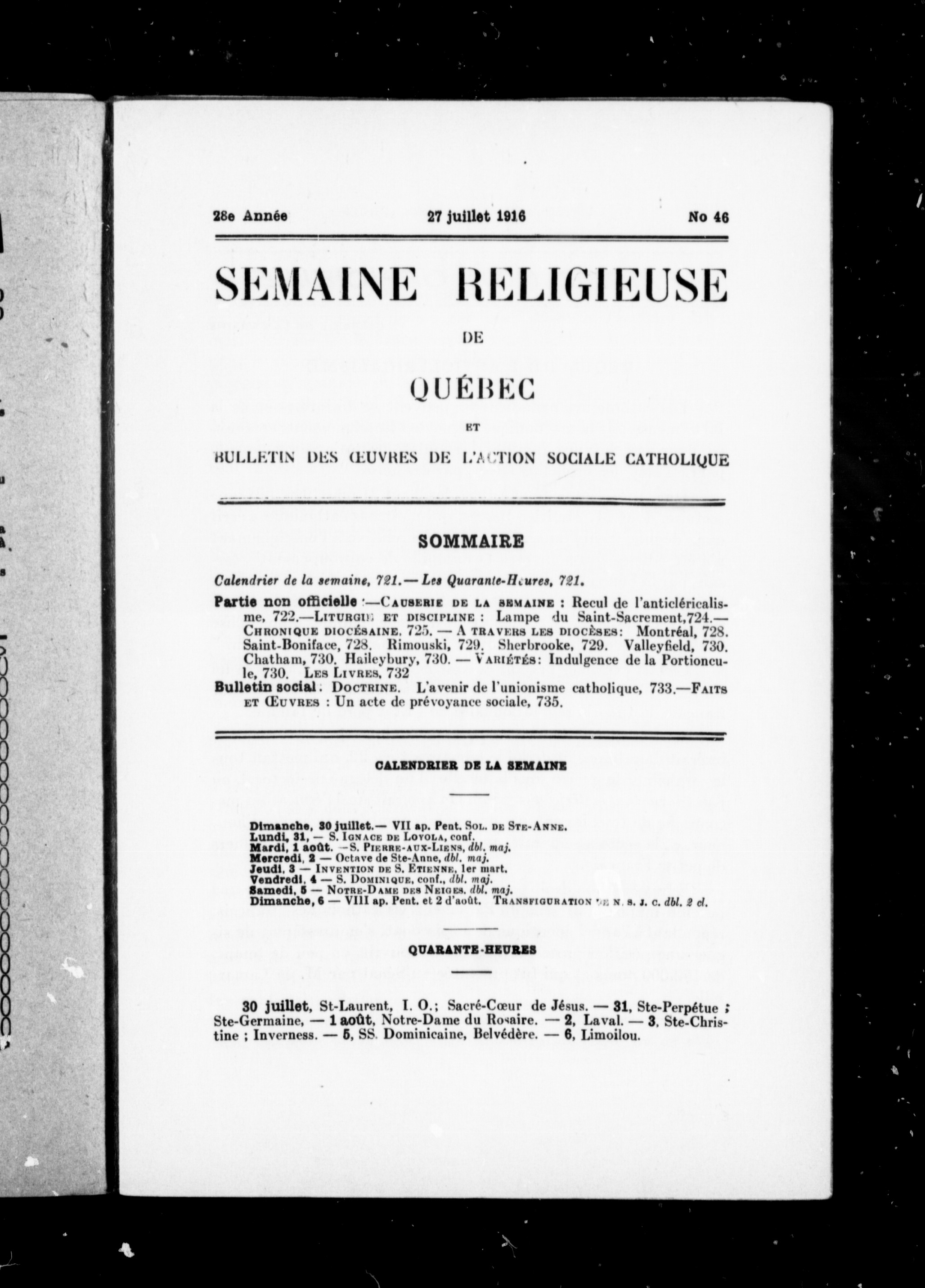La semaine religieuse de Québec : 28e année, no 46 (27 juil. 1916)