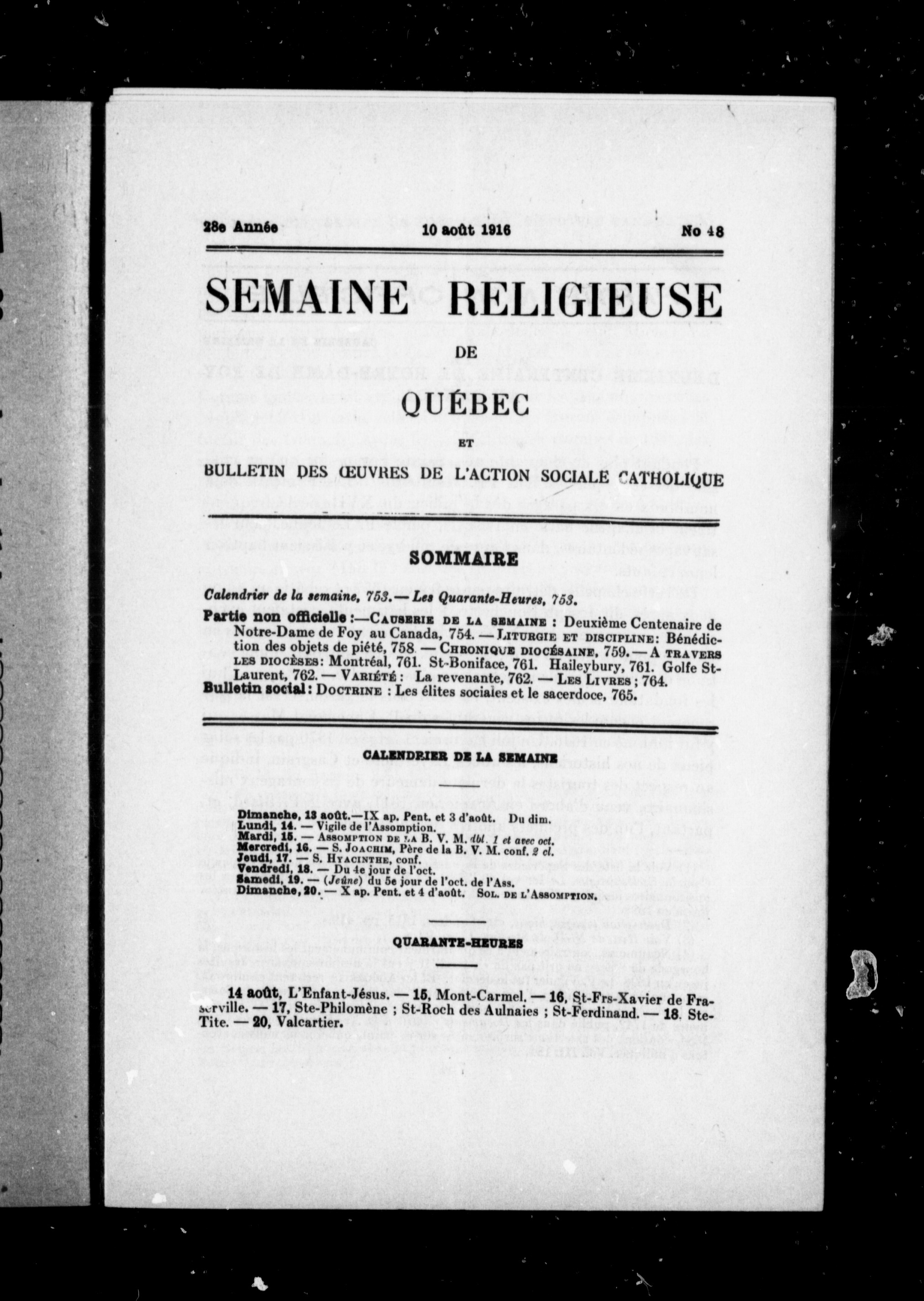 La semaine religieuse de Québec : 28e année, no 48 (10 août 1916)