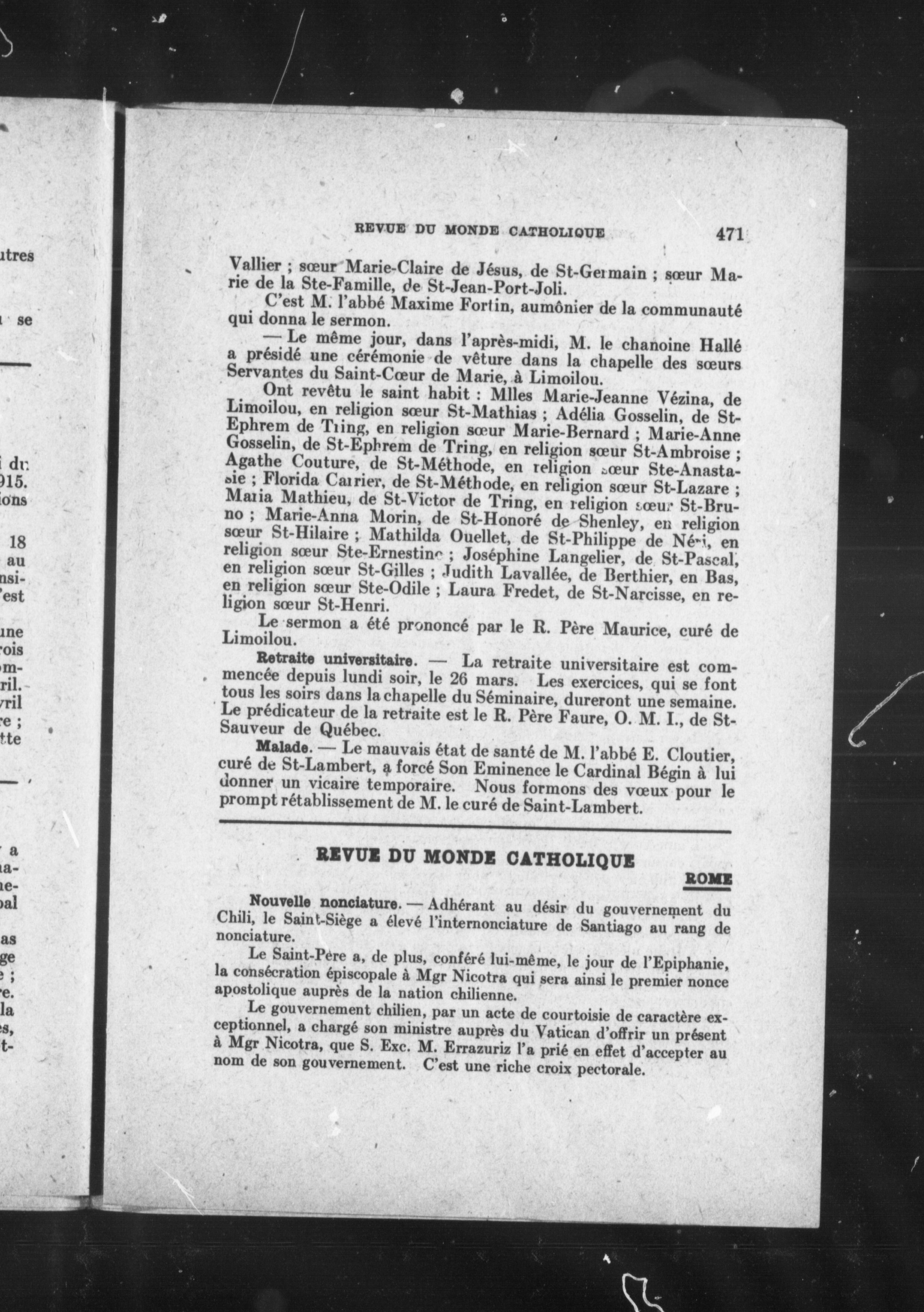 - Semaine religieuse de Québec et Bulletin des oeuvres de l'Action sociale catholique