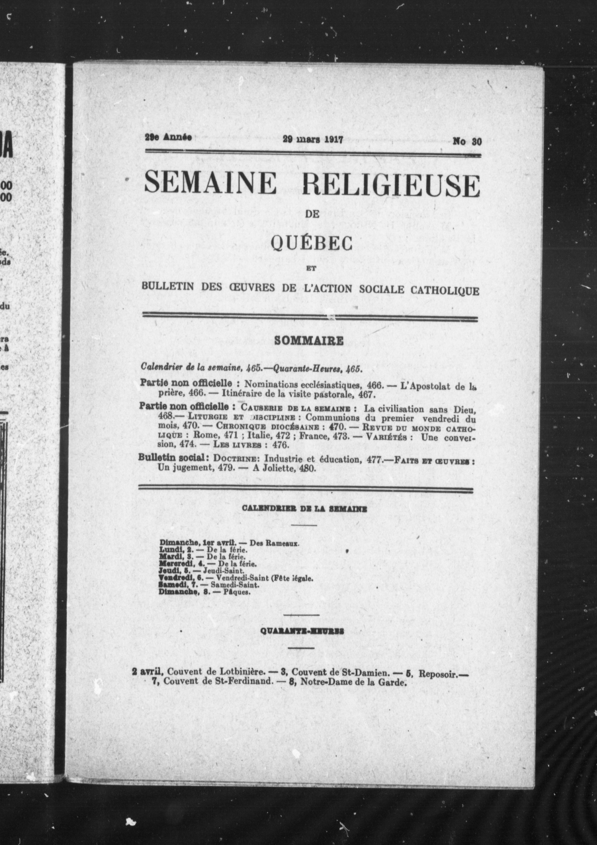 La semaine religieuse de Québec : 29e année, no 30 (29 mars 1917)