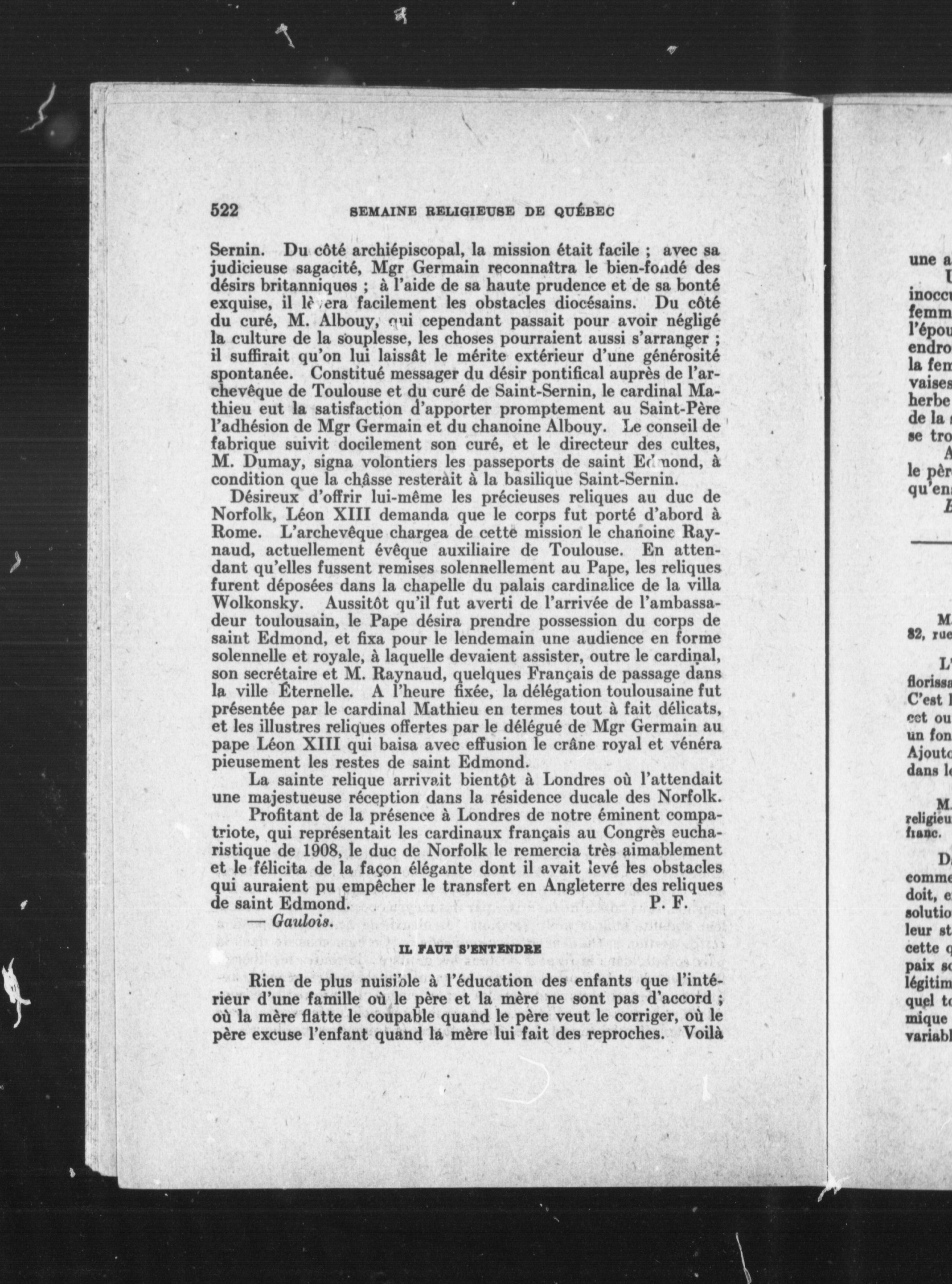- Semaine religieuse de Québec et Bulletin des oeuvres de l'Action sociale catholique