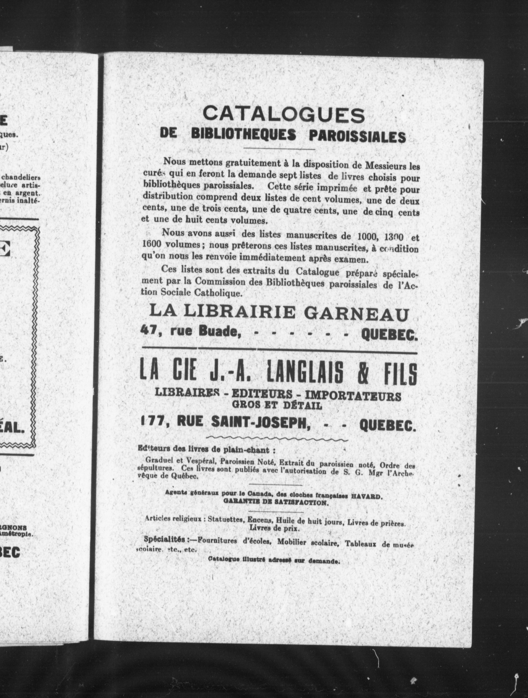 - Semaine religieuse de Québec et Bulletin des oeuvres de l'Action sociale catholique