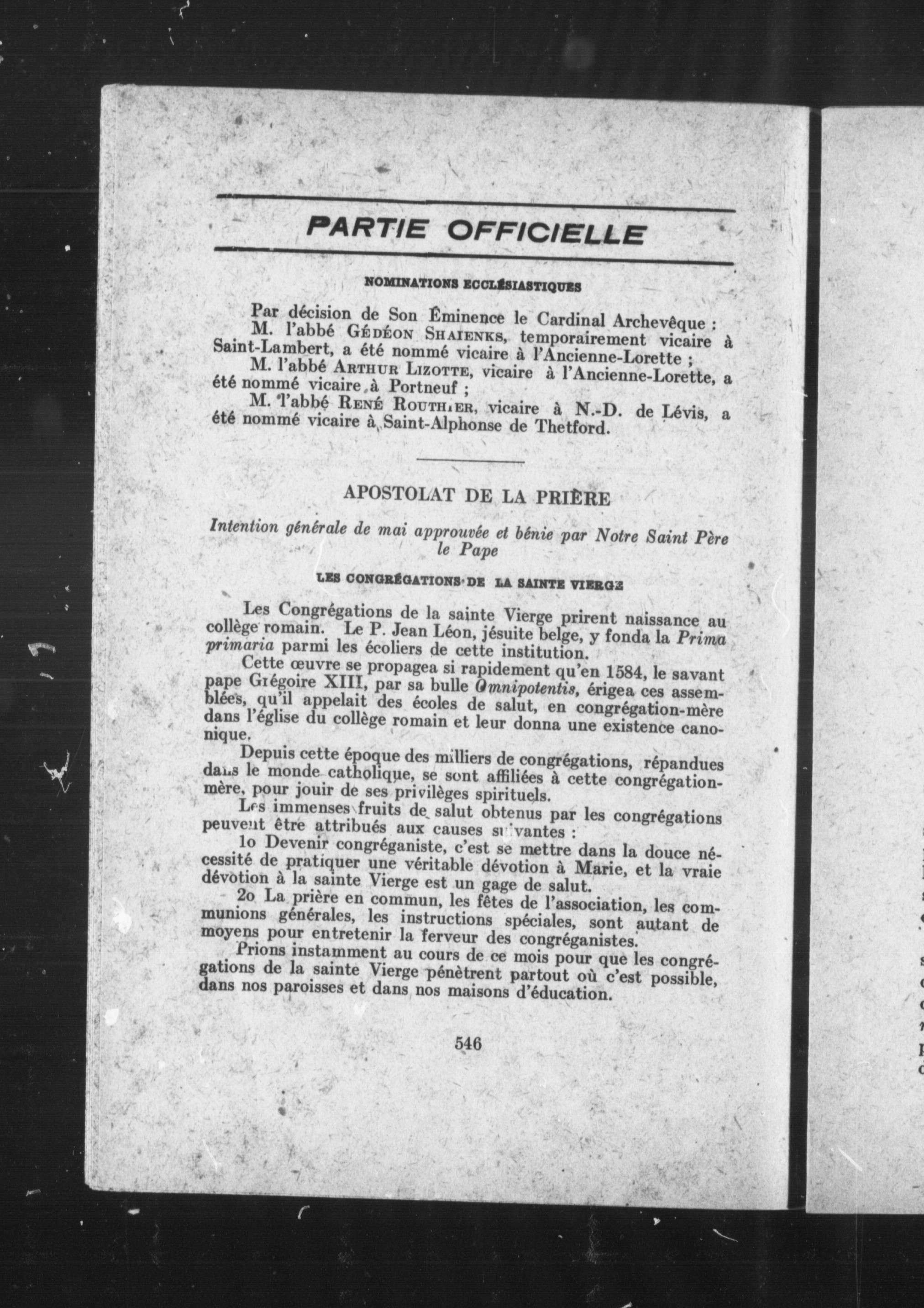 - Semaine religieuse de Québec et Bulletin des oeuvres de l'Action sociale catholique