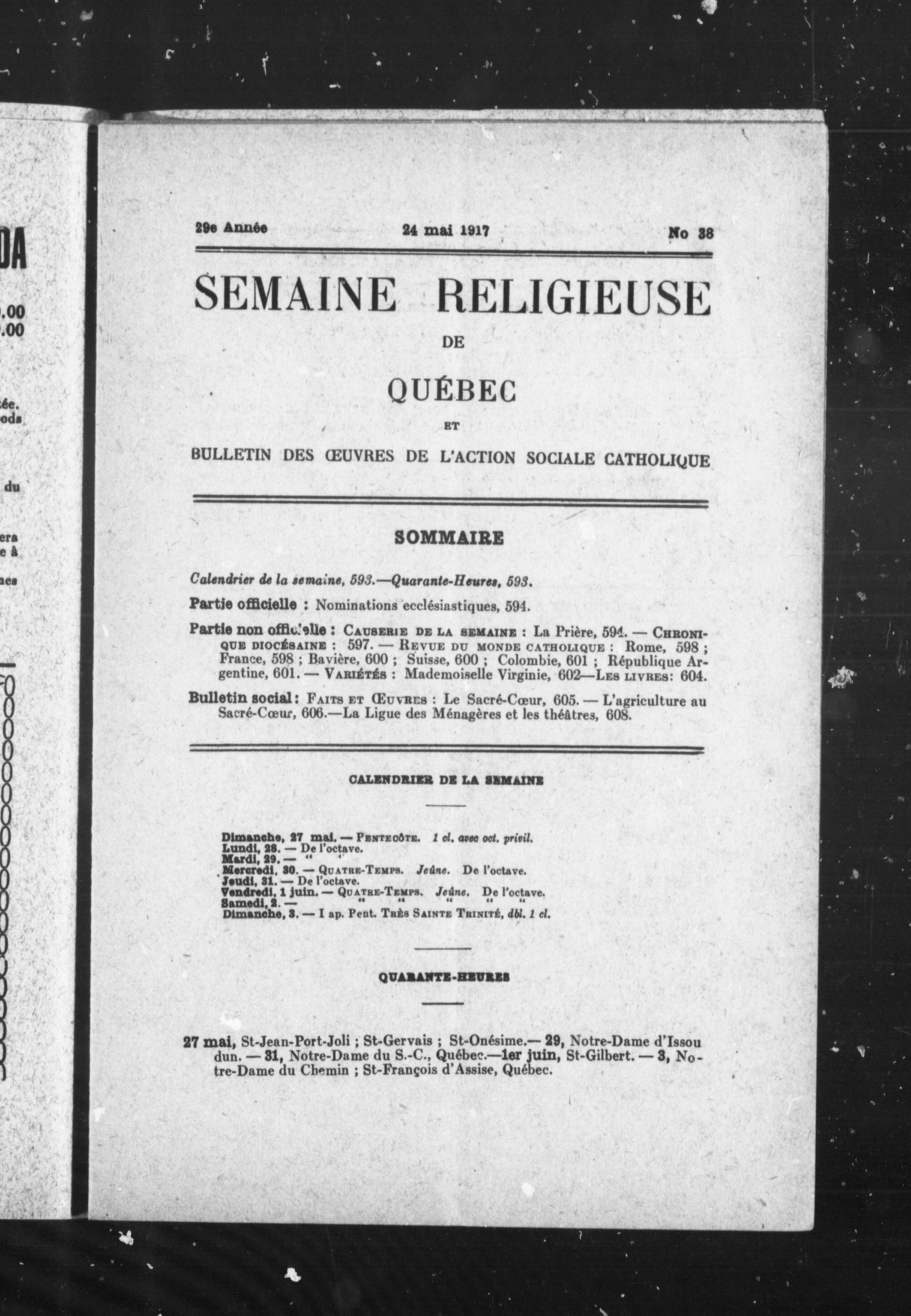 La semaine religieuse de Québec : 29e année, no 38 (24 mai 1917)